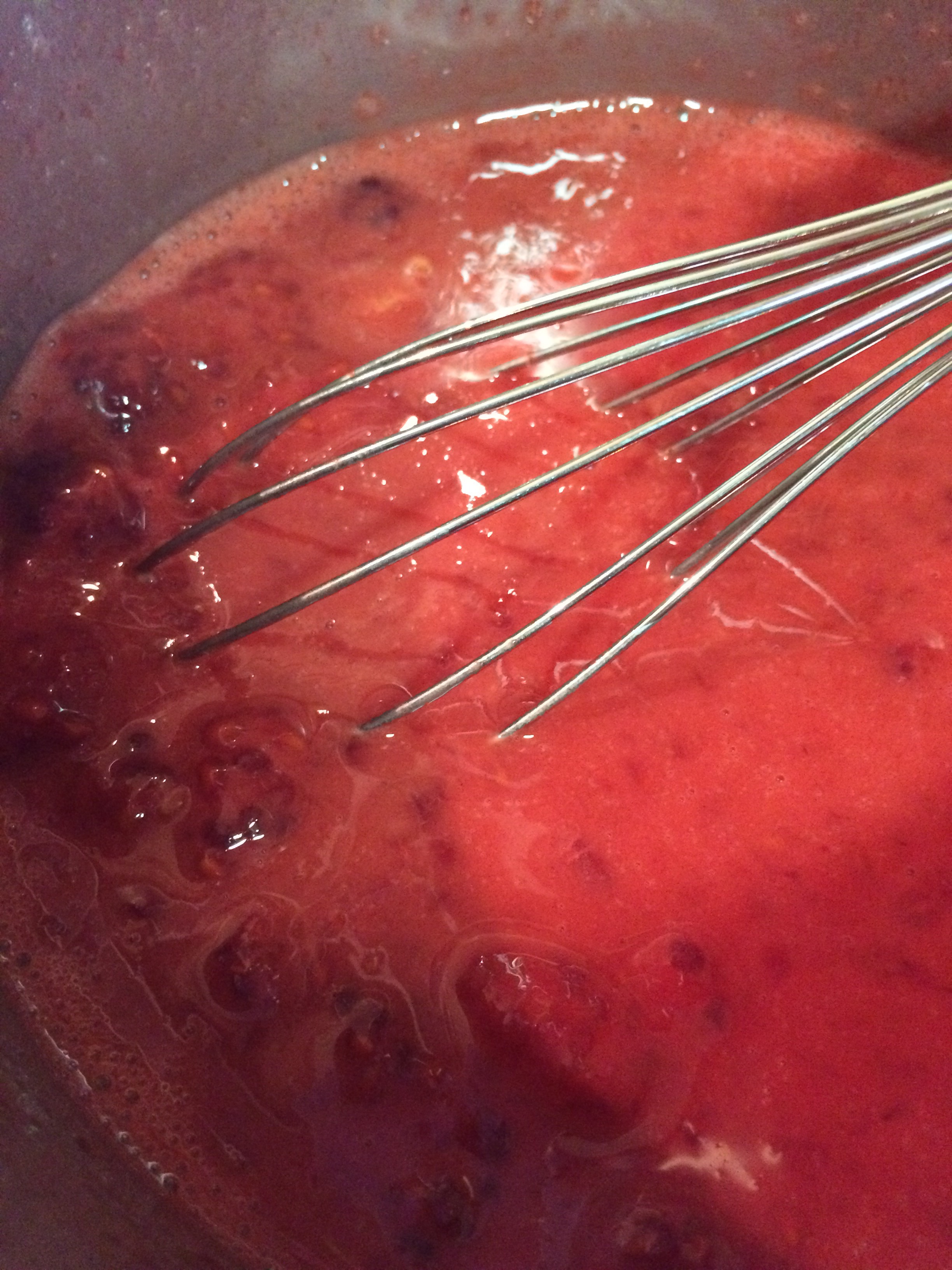 Die Himbeeren auftauen und abtropfen lassen oder gleich frische nehmen (wenn sie bald kein Vermögen mehr kosten) und mit dem Wasser, Zucker, Zitronensaft, Salz und der Stärke in einem Töpfle aufkochen. Die Mischung köcheln lassen, bis sie etwas eindickt, dann ist sie fertig. (Wer keine Kerne mag: Ich hab nen Teil der Masse durch ein Sieb gestrichen und so die nervigen Kerne verbannt.) Die Himbeermasse wird dann auf den ausgekühlten Tartelettes gleichmäßig verteilt und alles wandert für ne gute halbe Stunde in den Kühlschrank.