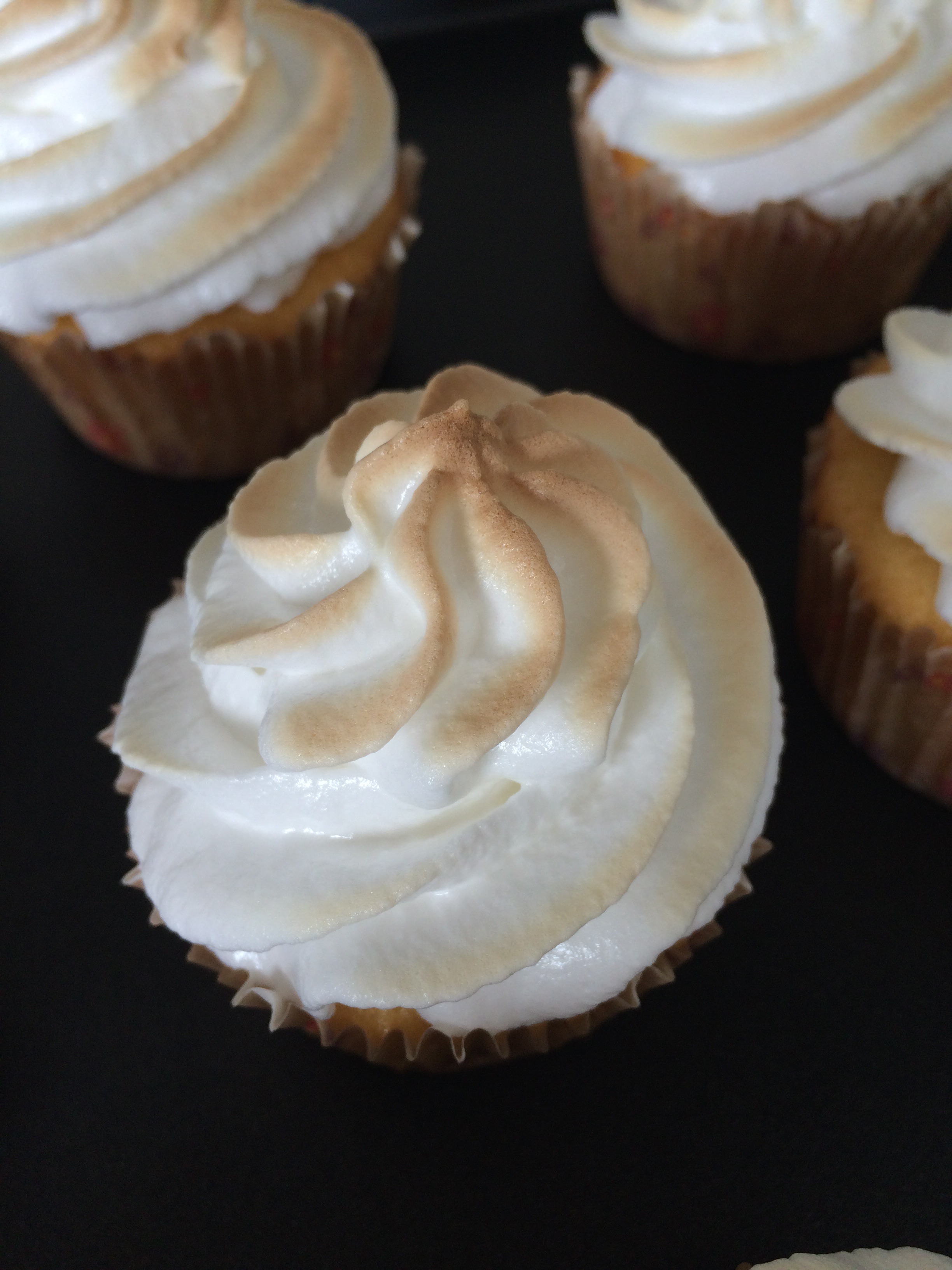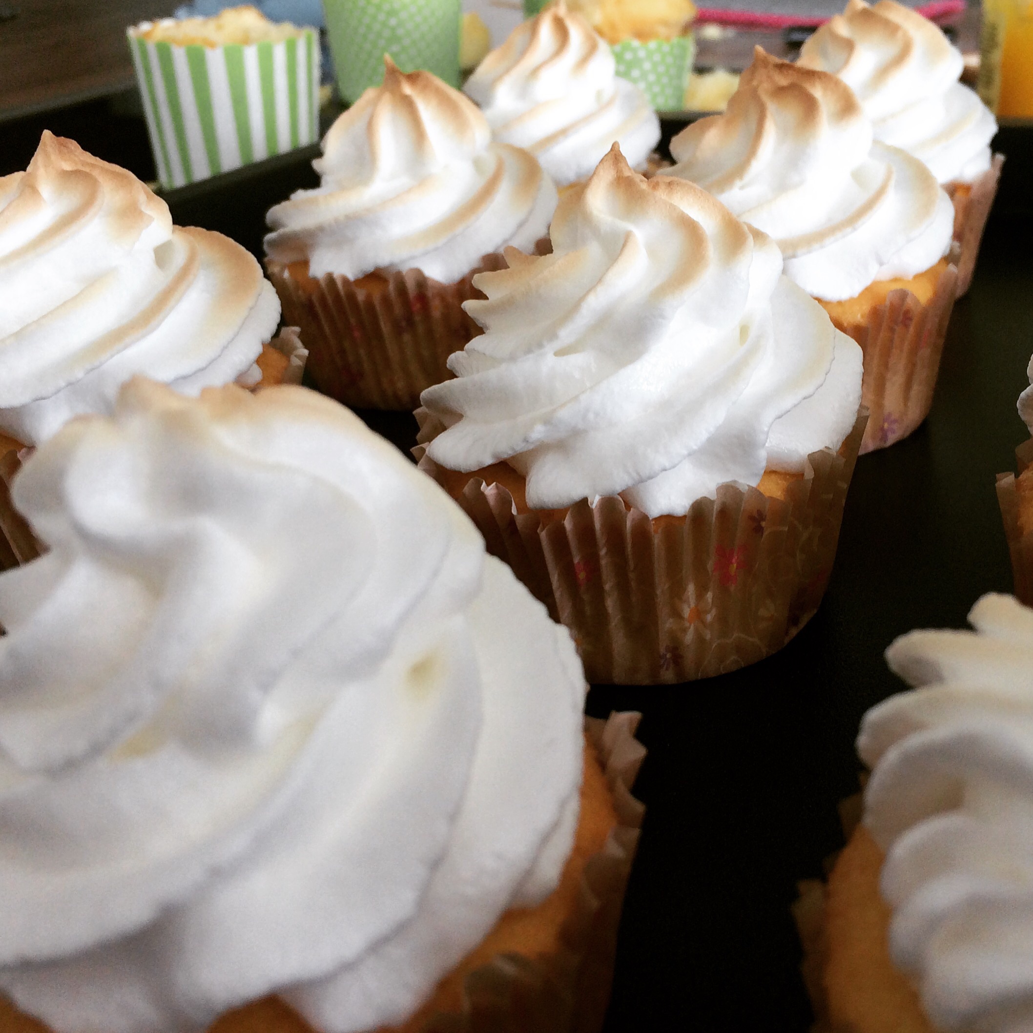 Wer den Aufwand für diese Art Baiser scheut – kein Problem! Mit Zitronenguss aus Puderzucker ud Zitronensaft schmecken die Cupcakes auch klasse! Mit oder ohne Füllung… Das sind nun glaub 273 Möglichkeiten diese Cupcakes zu variieren…
