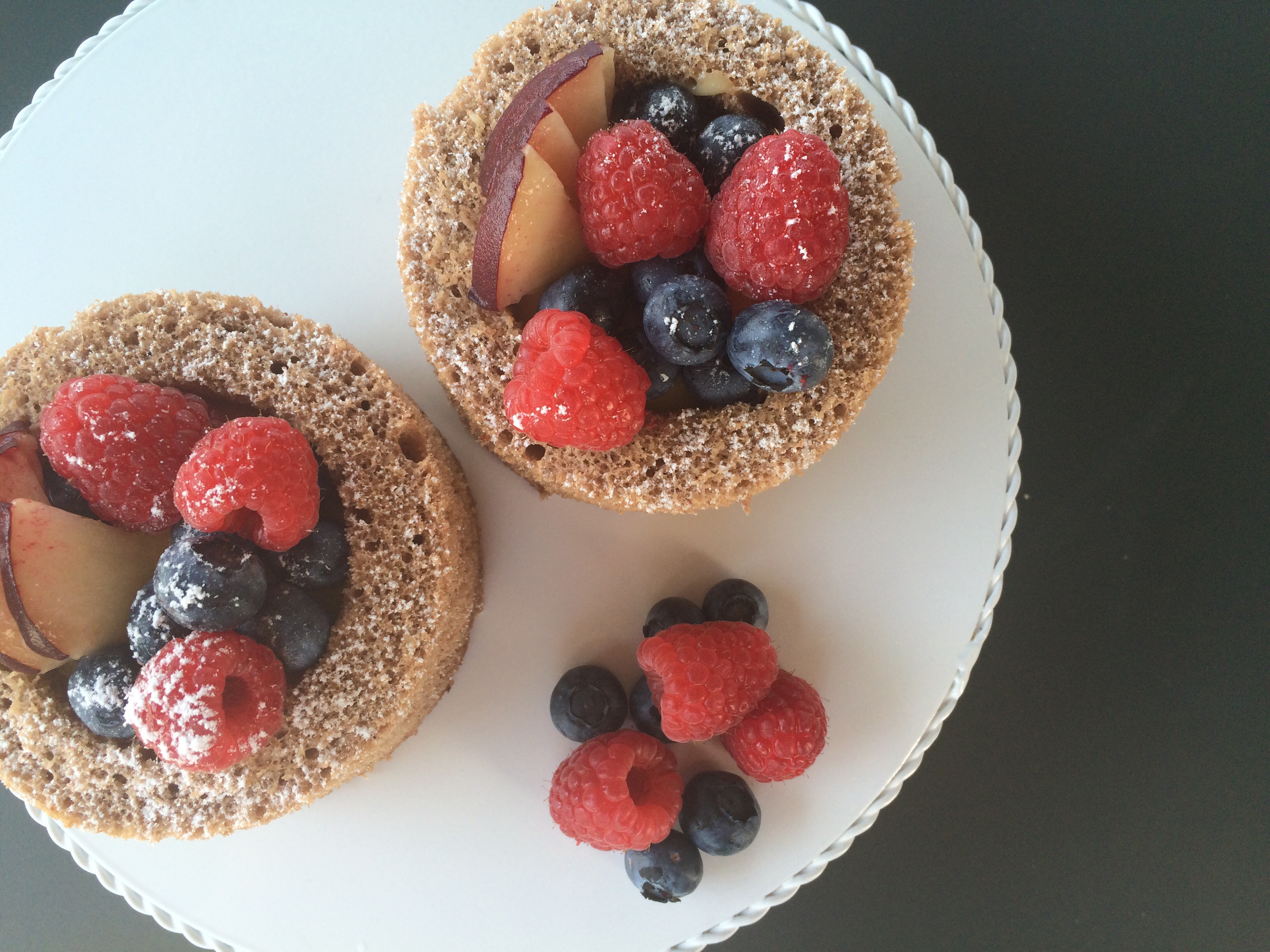 Die Törtchen dann mit frischem Obst verzieren und mit einem Hauch Puderzucker bestäuben! Mhhhhhh!! Nun kann der Besuch kommen!