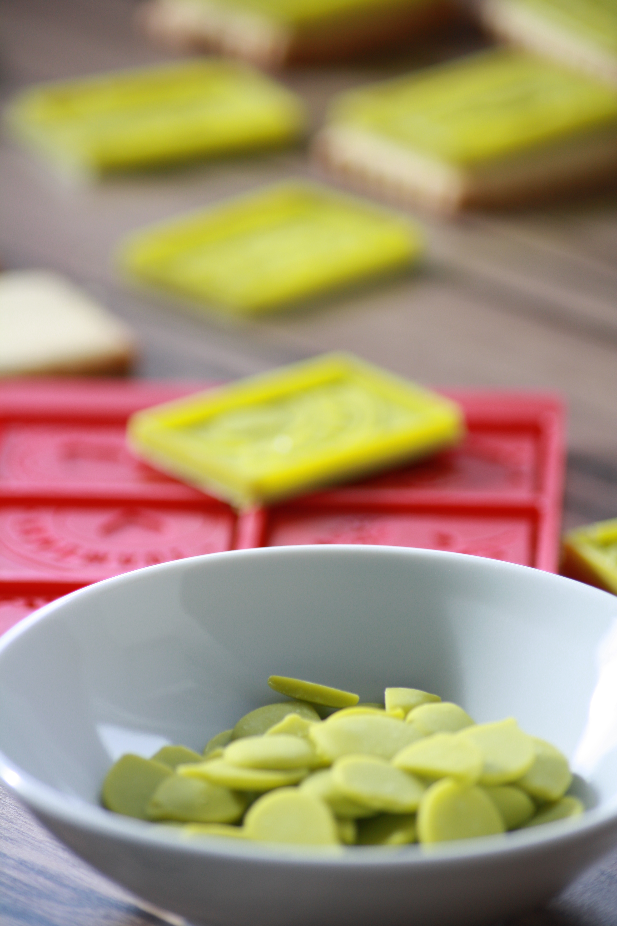 Während der Teig 1 Stunde im Kühlschrank ruht, könnt ihr euch an die Verzierung aus Schokolade machen. Ich habe dazu Cakemelts verwendet. Die gibts in vielen Farben, lassen sich sehr gut dosieren und das Beste, die schmecken total lecker!