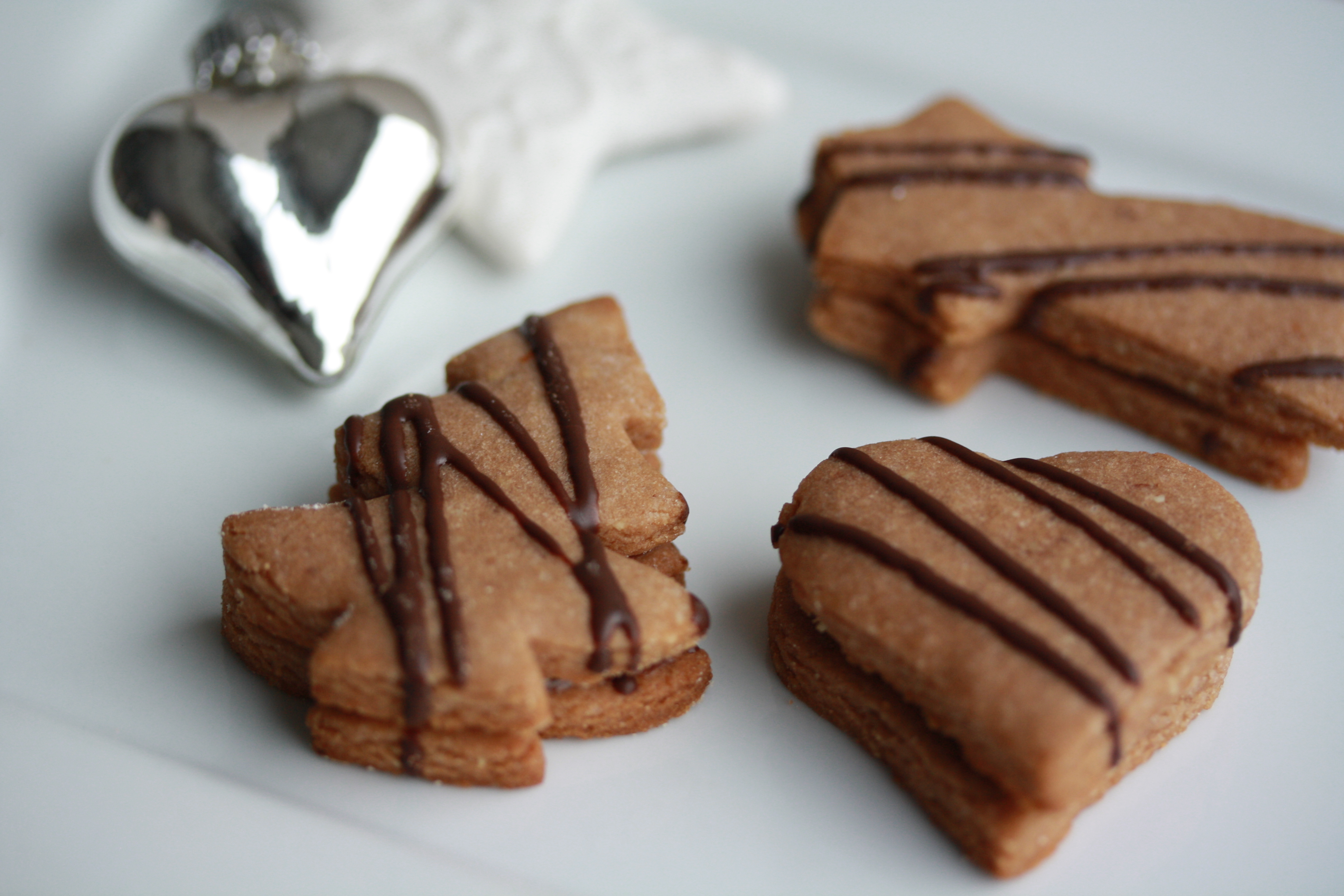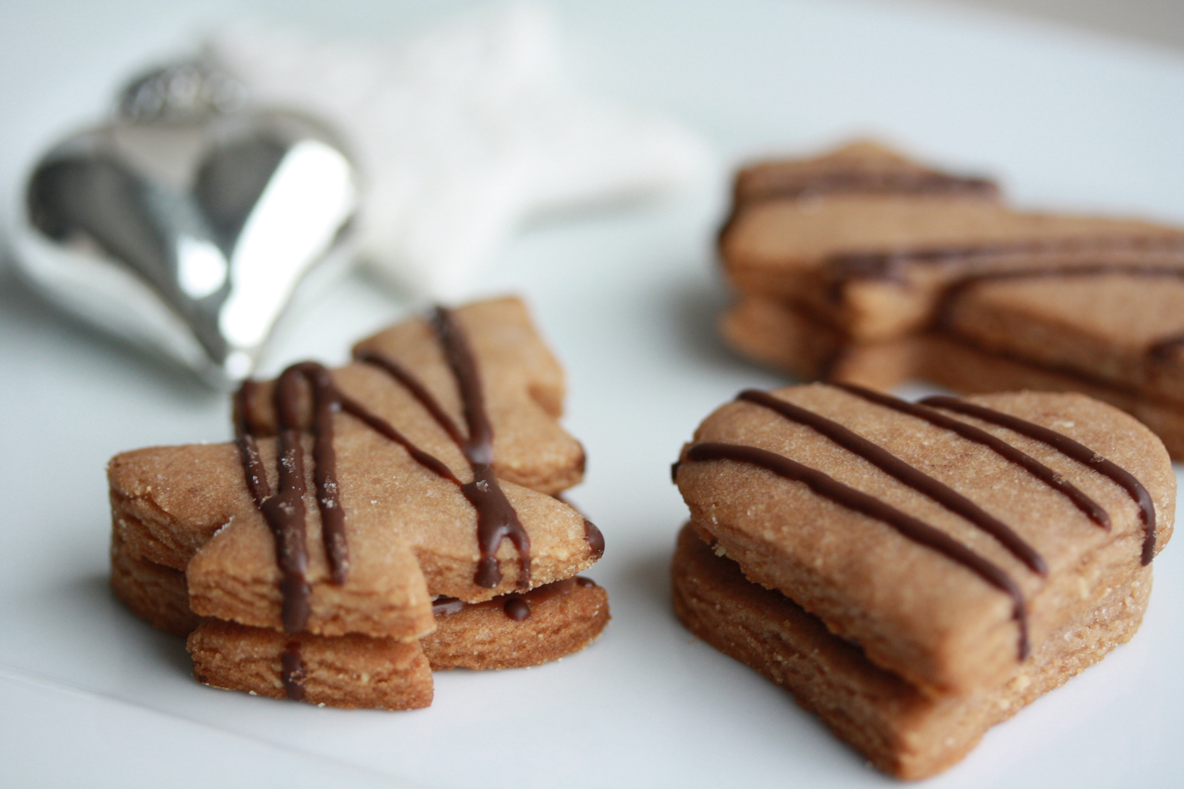 Die fertigen Plätzchen, bei mir waren es hauptsächlich Herzen, lasst ihr auskühlen. Nun werden immer zwei Herzen zusammengesetzt. Dazu gebt ihr auf eine Unterseite die Nutellafüllung (entweder mit einem Spitzbeutel oder einem Gefrierbeutel und eine Ecke minimal abschneiden) und klebt eine zweite Unterseite drauf. Die fertigen Plätzchen müssen nun wieder auskühlen bzw. trocknen, damit sie nicht rutschen.