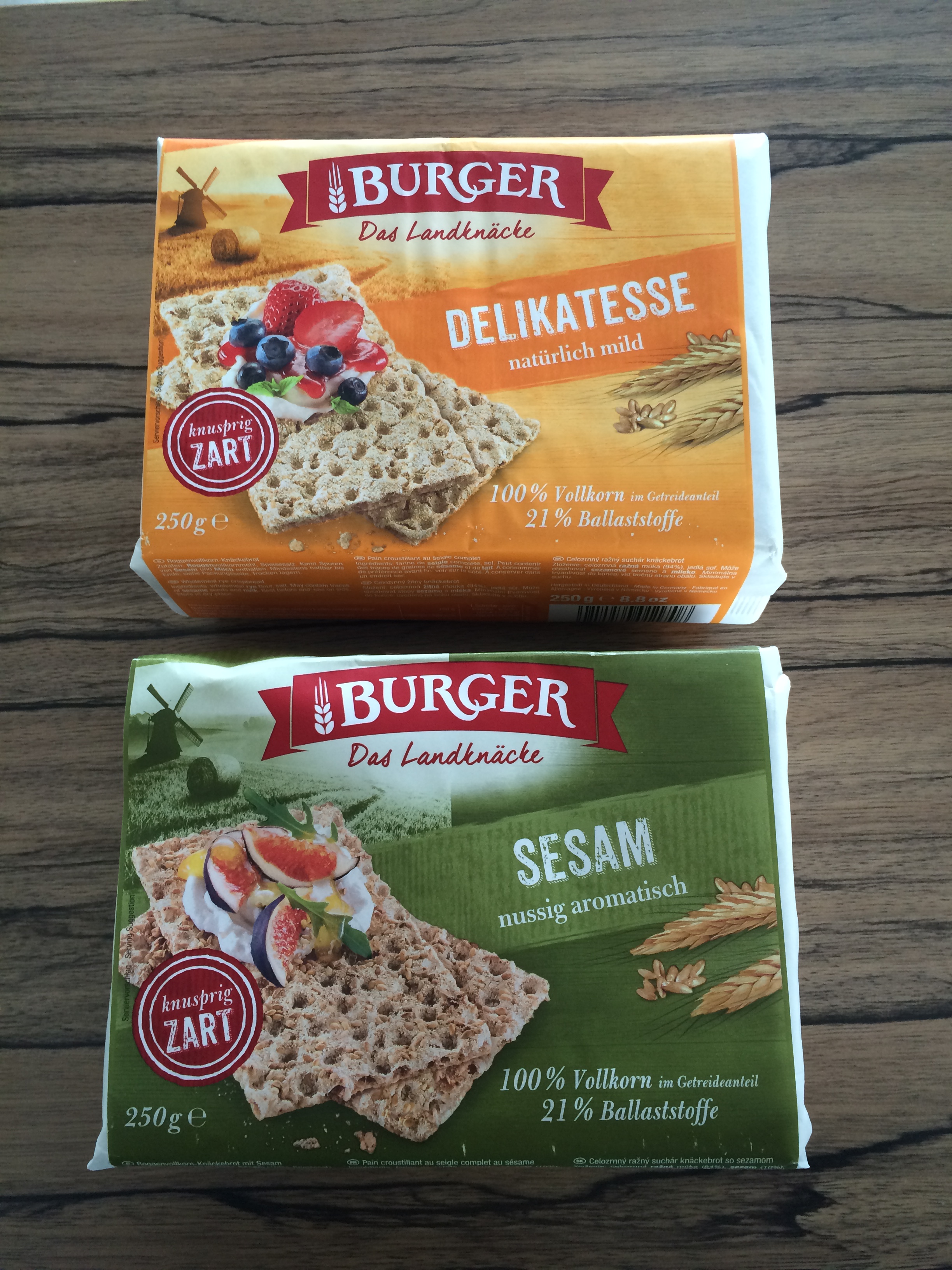 Ich bevorzuge frisches Brot von Oma Sylvia, aber zwischendruch mal ein Knäckebrot mit Frischkäse und Kresse – echt lecker!! Und auch mit Nutella schmeckt es echt gut 🙂