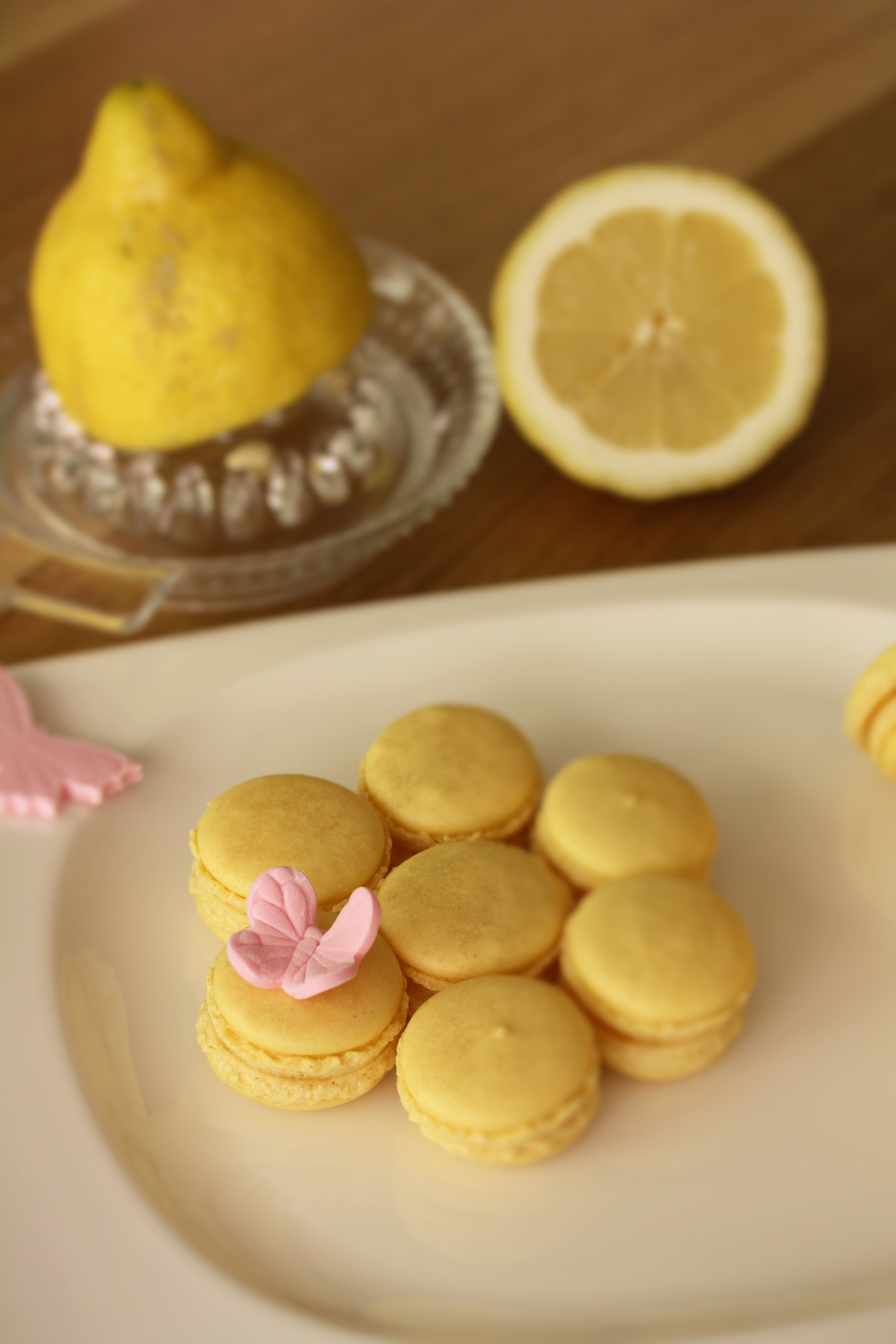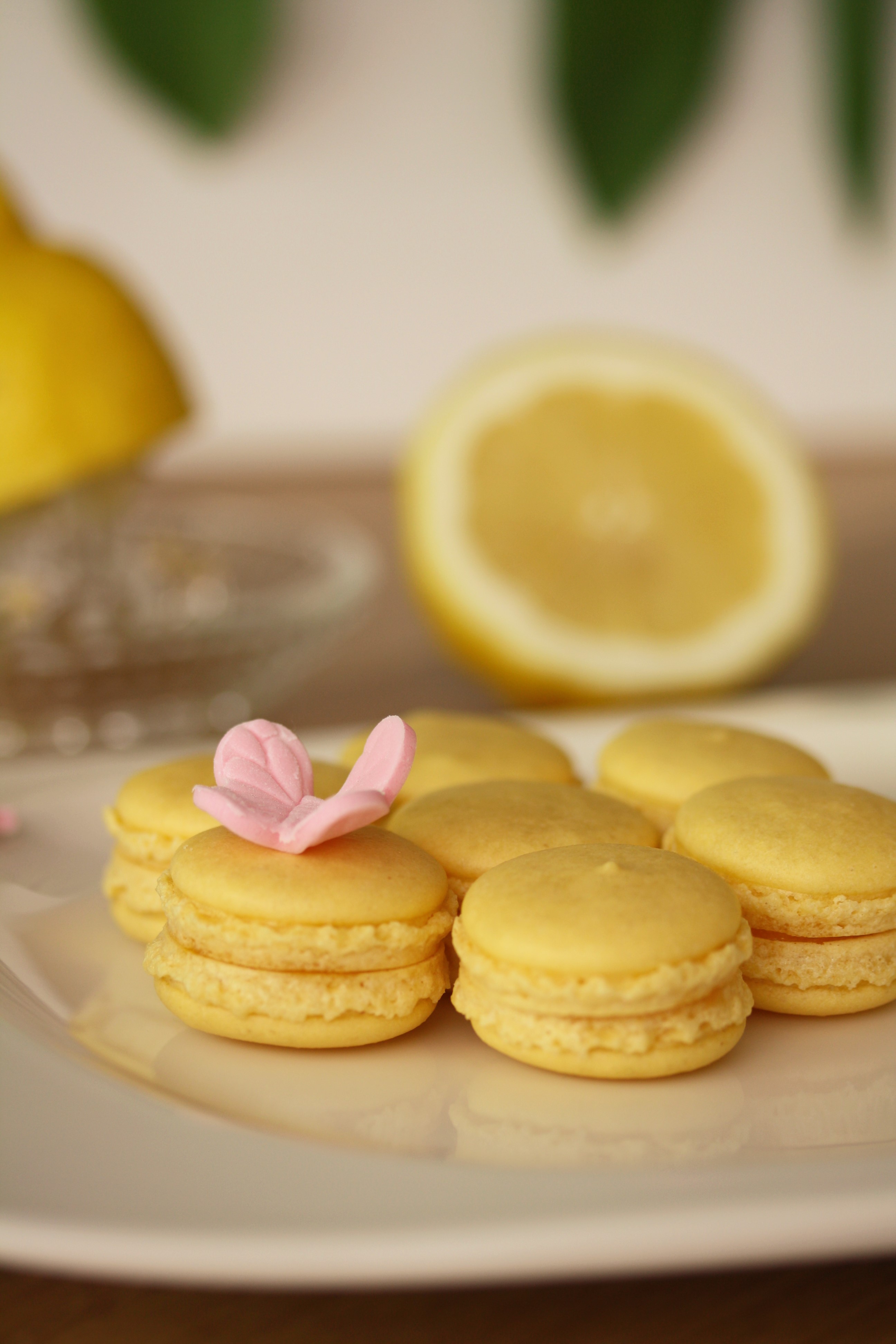Das Rezept für die Zitronencreme habe aus verschiedenen Rezepten aus der Rezeptwelt oder von Backseiten erstellt und so geändert, dass es mir zum einen gut schmeckte und zum anderen für ein Rezept Macarons ausreichte. Bei dieser Füllung ist weniger mehr, denn durch die Süße und Säure wird es sonst auch schnell mal zu viel des Guten. (Also eher weniger auf die Hälften spritzen als bei der Himbeerfüllung.)