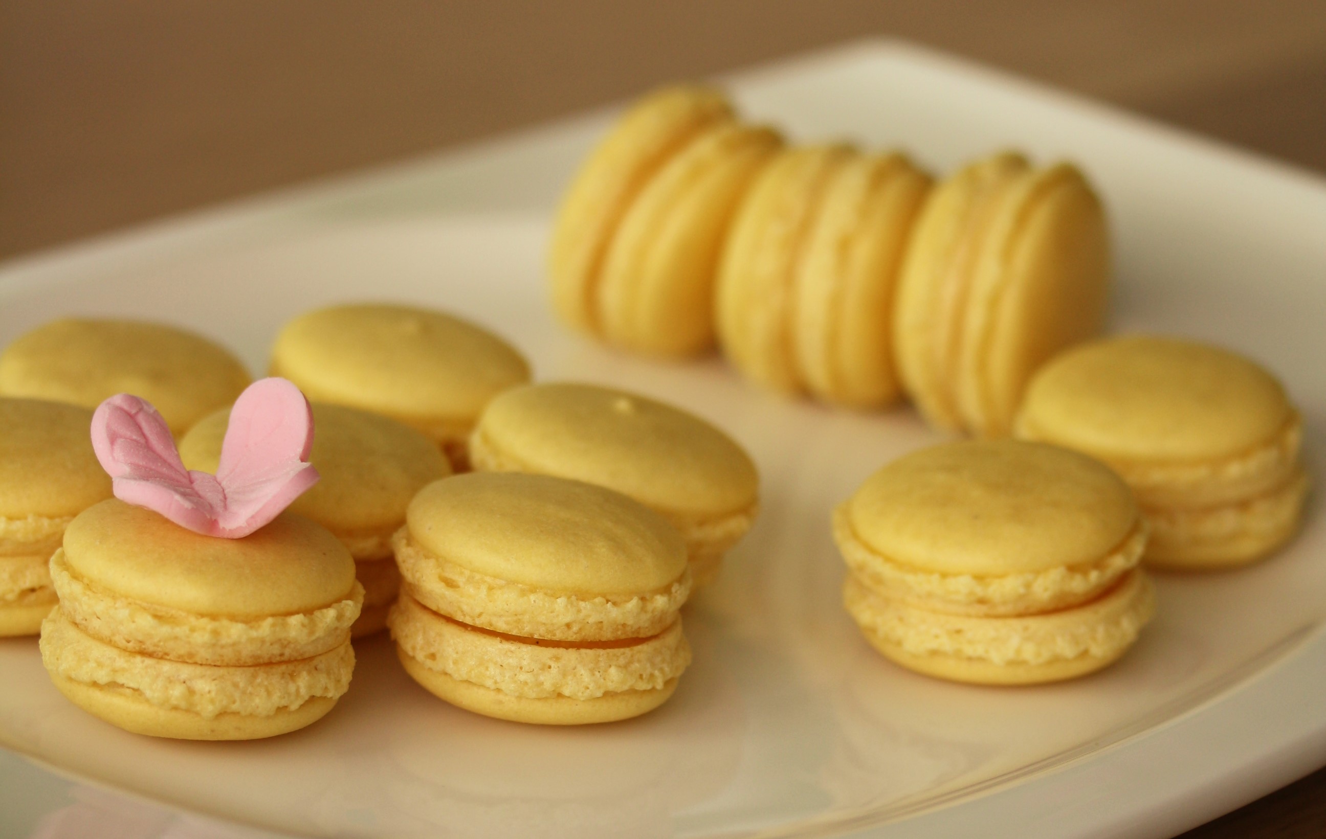 Die Macaronhälften immer paarweise auf die Arbeitsfläche legen und die Füllung mit einem Spritzbeutel oder einem Teelöffel auf eine Hälfte auftragen. Nun den Deckel vorsichtig aufdrücken und alle gelben Träumchen kühl lagern. Zum Festwerden auch gerne (noch) nach draußen oder in den Kühlschrank. Die Sorte Macarons schmeckt aus dem Kühlschrank heraus am besten, haben HerrKuchenzauber und ich heute beschlossen. Noch erfrischender einfach!
