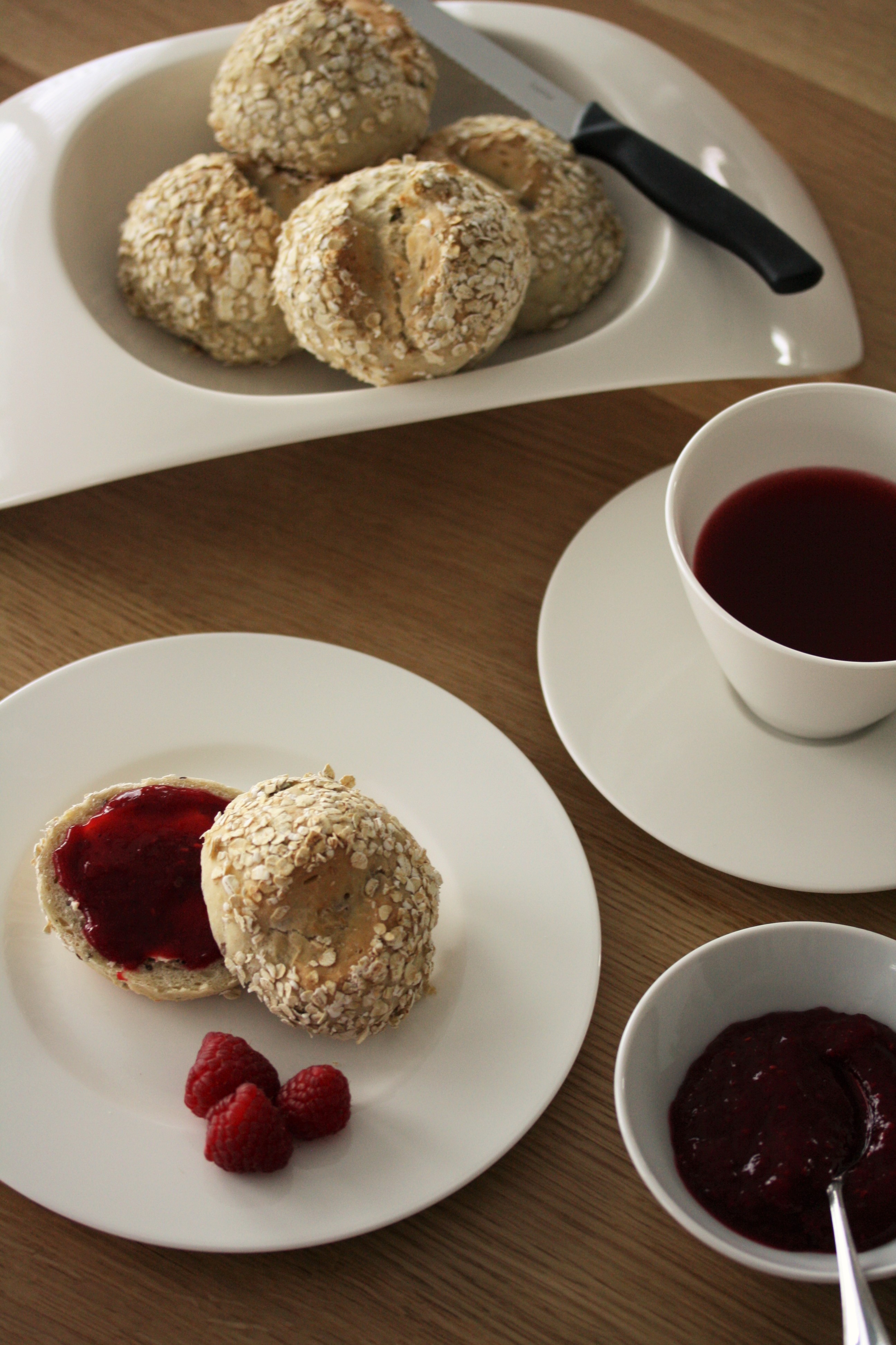 Ich hab uns Weckle mit kernigen Vollkorn-Haferflocken gebacken – könnt ihr sie riechen??? 🙂