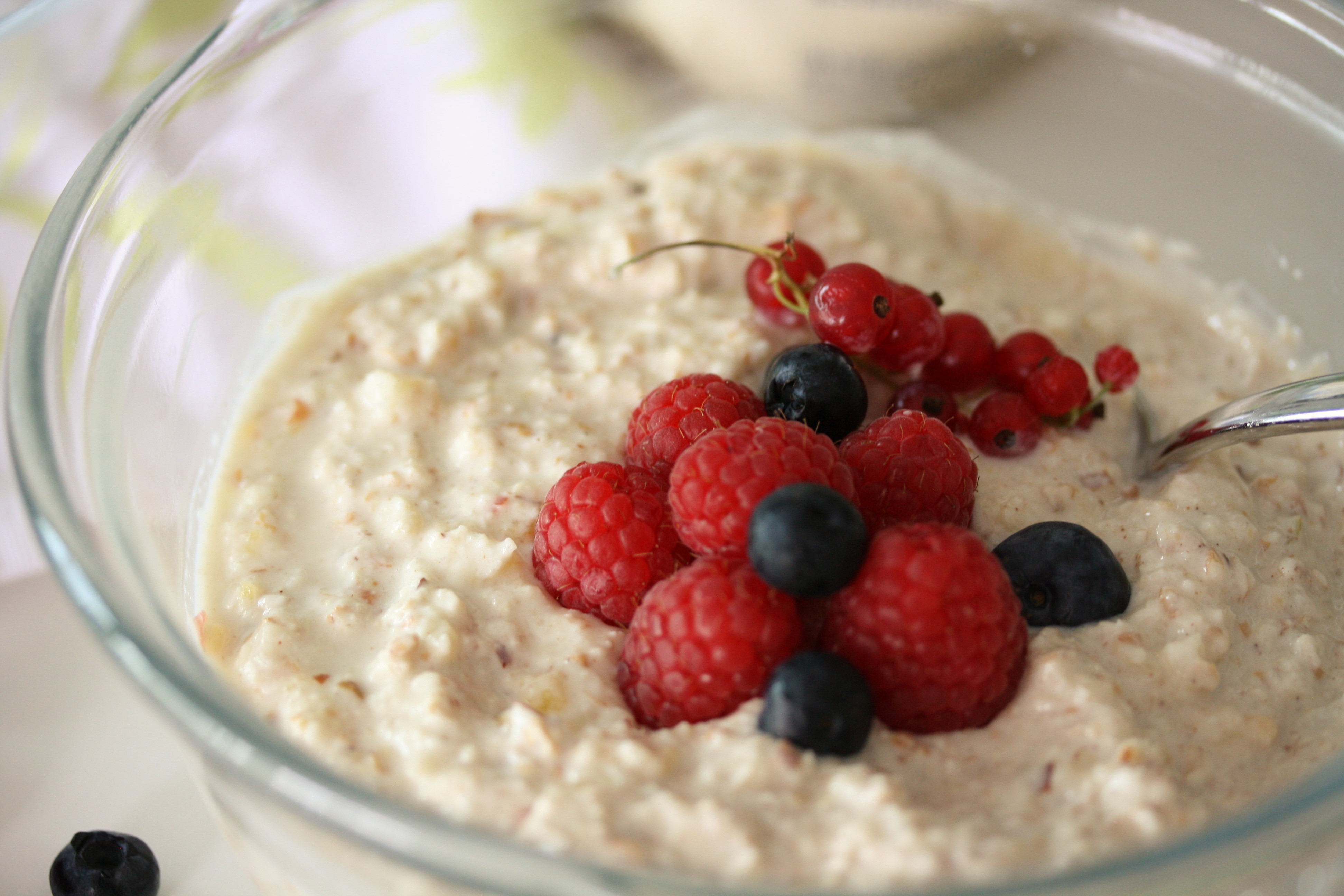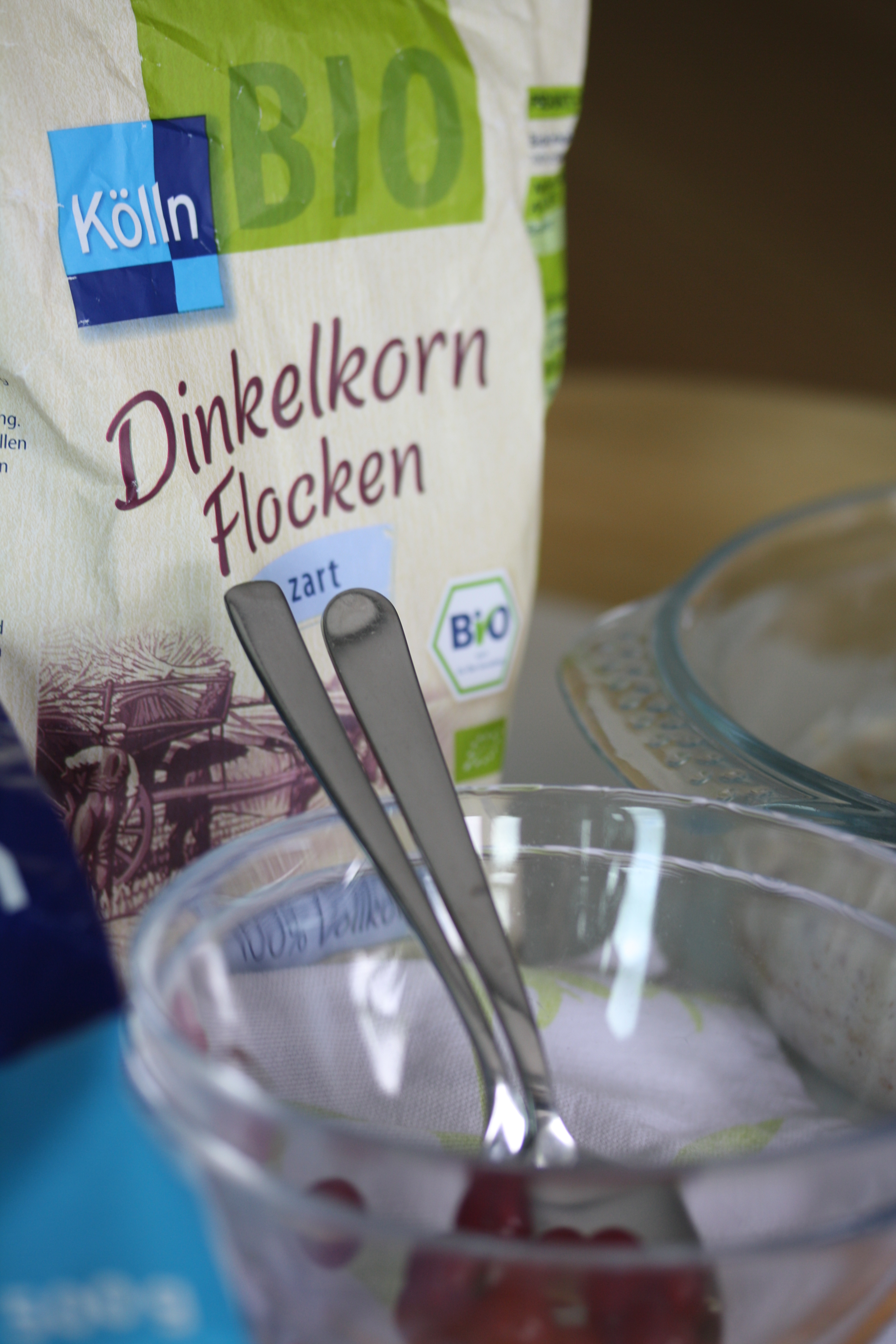 Es ist eine Abwandlung vom Bircher Müsli und mindestens genauso lecker!! Mit leckeren Früchten und Dinkelvollkornflocken….mhhhhh!!!
