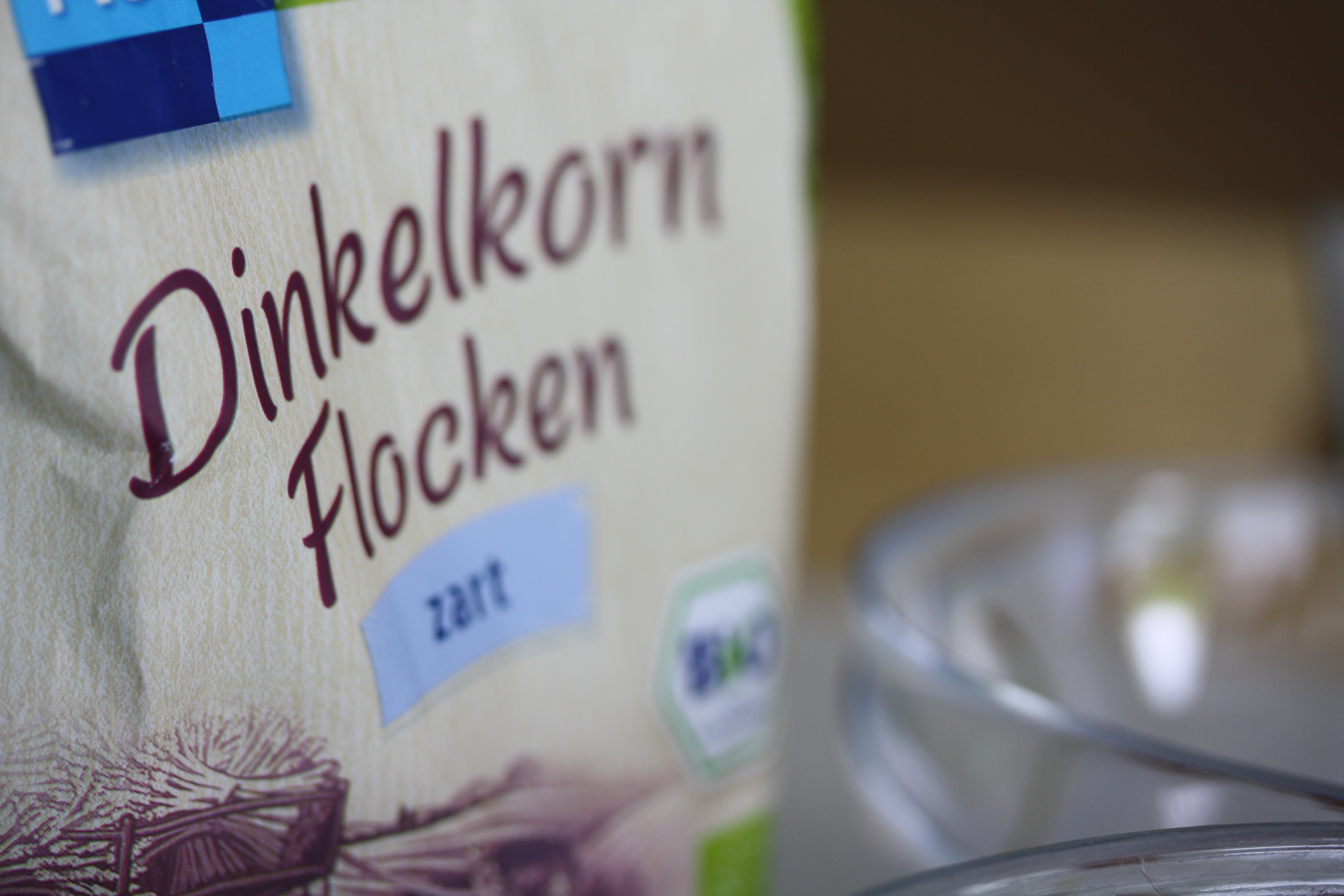 - 50g zarte Haferflocken (oder einfach nur 100g Vollkorndinkelflocken, wer mag)