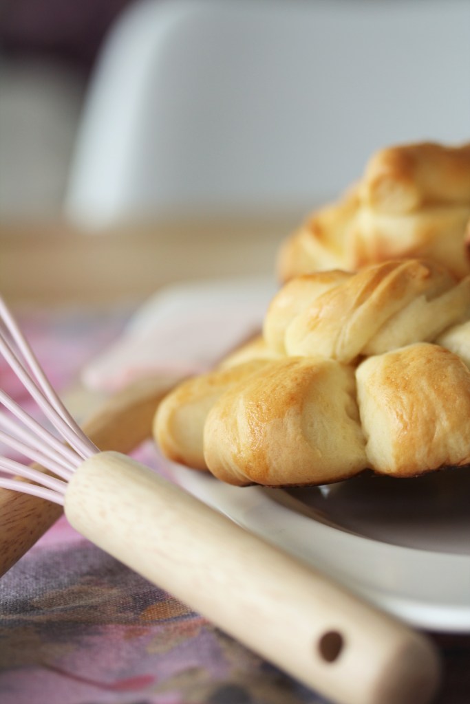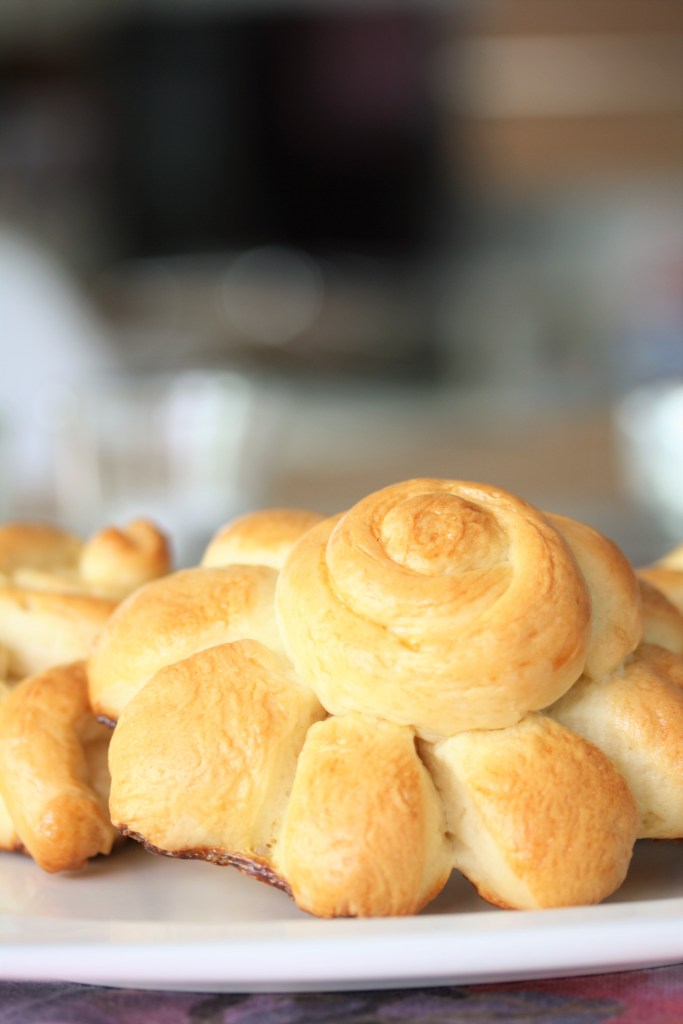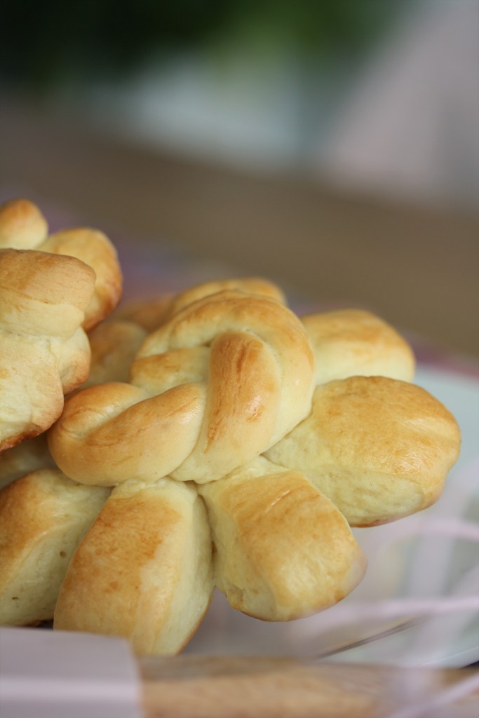 4 Mutscheln erst fertig formen, dann bestreichen und im Ofen gute 20-25 Minuten goldgelb backen. Solange die restlichen Mutscheln formen und bestreichen.