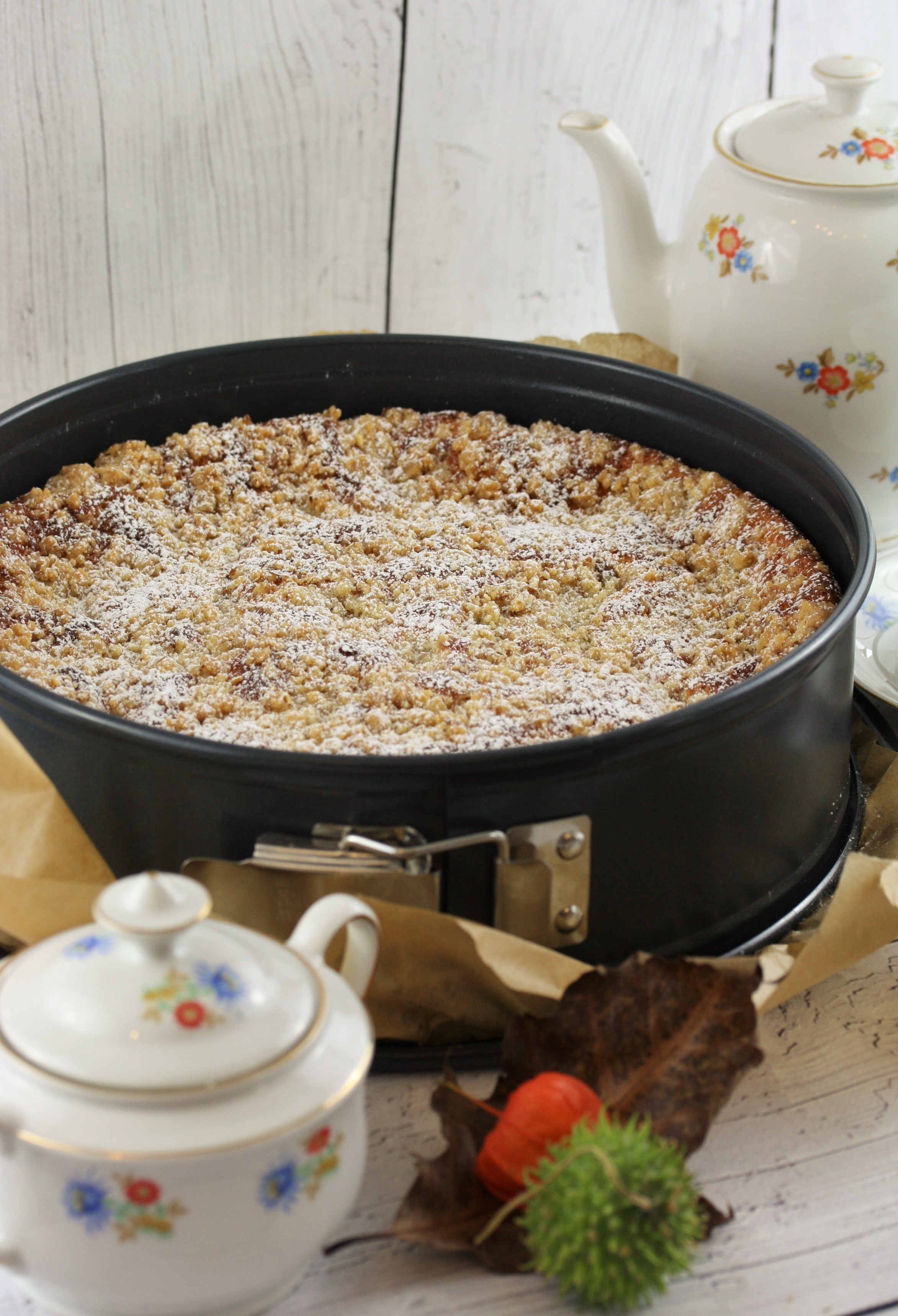 Apfelkuchen – wie das schon klingt… APFELKUCHEN….da schmecke ich schon zarte Apfelstückchen, die noch leichten Biss haben, weichen Mürbteig, süß-nussige Streusel…. MUSS man doch mögen oder?