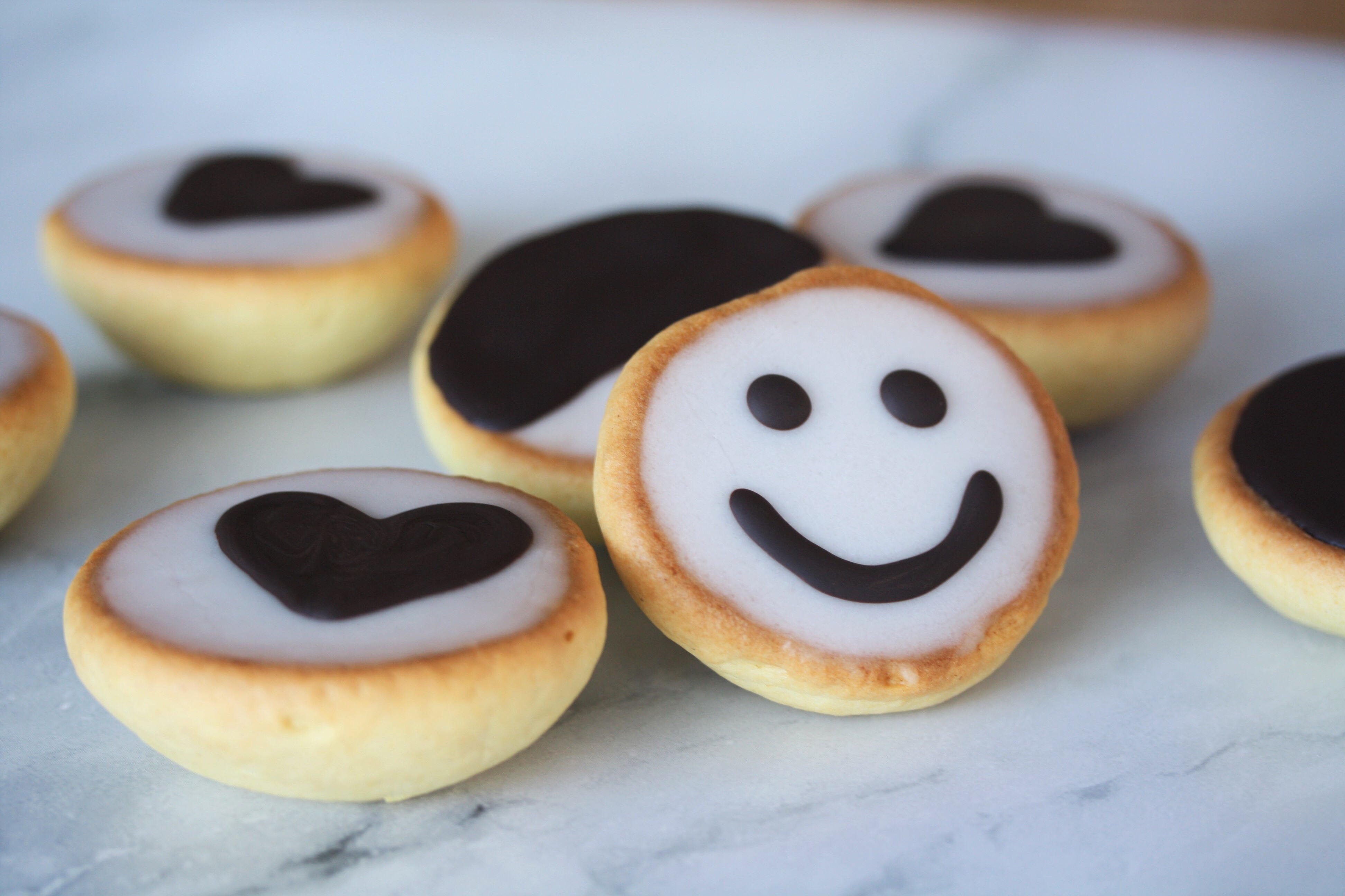- Für die Deko aus Puderzucker und Zitronensaft eine dickflüssige Glasur herstellen und mit einem Teelöffel auf die kalten Amis auftragen. Wer Smarties o.Ä. auf der Zuckerglasur haben möchte, sollte diese direkt draufsetzen. Sonst gibt es später Risse.