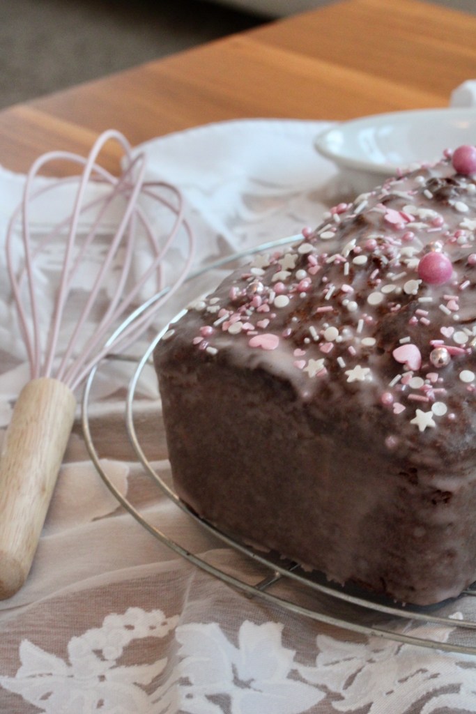 Für die Kinderpunschglasur benötigt ihr noch 200g gesiebten Puderzucker und 3-4 EL Kinderpunsch. Beide Zutaten miteinander verrühren und über den ausgekühlten Kuchen gießen. Wer den Guss dickflüssiger mag, nimmt einfach weniger Punsch 😉