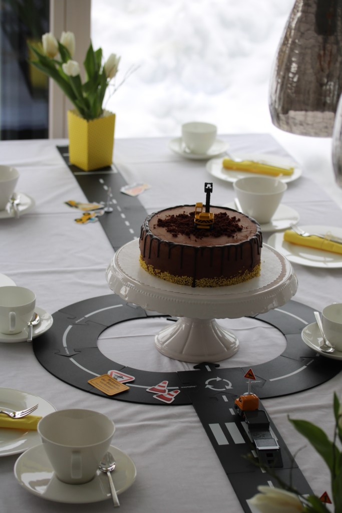 Ich bin gespannt, wie ihr unsere Deko findet. Die Inspo zum Tisch mit der Straße kam vom Instaaccount FräuleinFlora, die die Straßenteile von waytoplay im Sommer auch mal in die Tischdeko einbaute. Es war also Geschenk und Deko in einem bei uns.