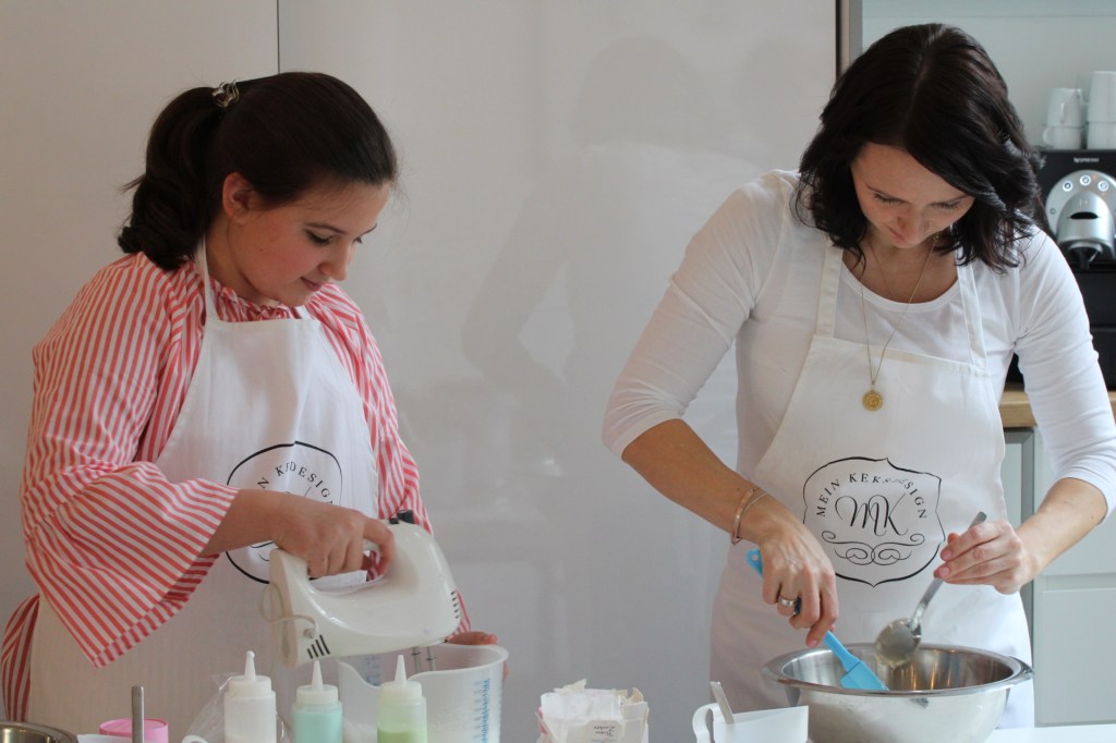 Wir backten Cupcakes und bereiteten Royal Icing in kleinen Gruppen vor. Stephanie gab uns nebenbei Tipps und verriet uns Tricks, worauf wir achten sollen, dass die Konsistenz für das Icing passte oder die Temperatur für die Buttercreme.