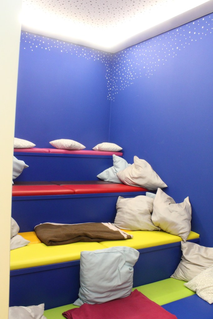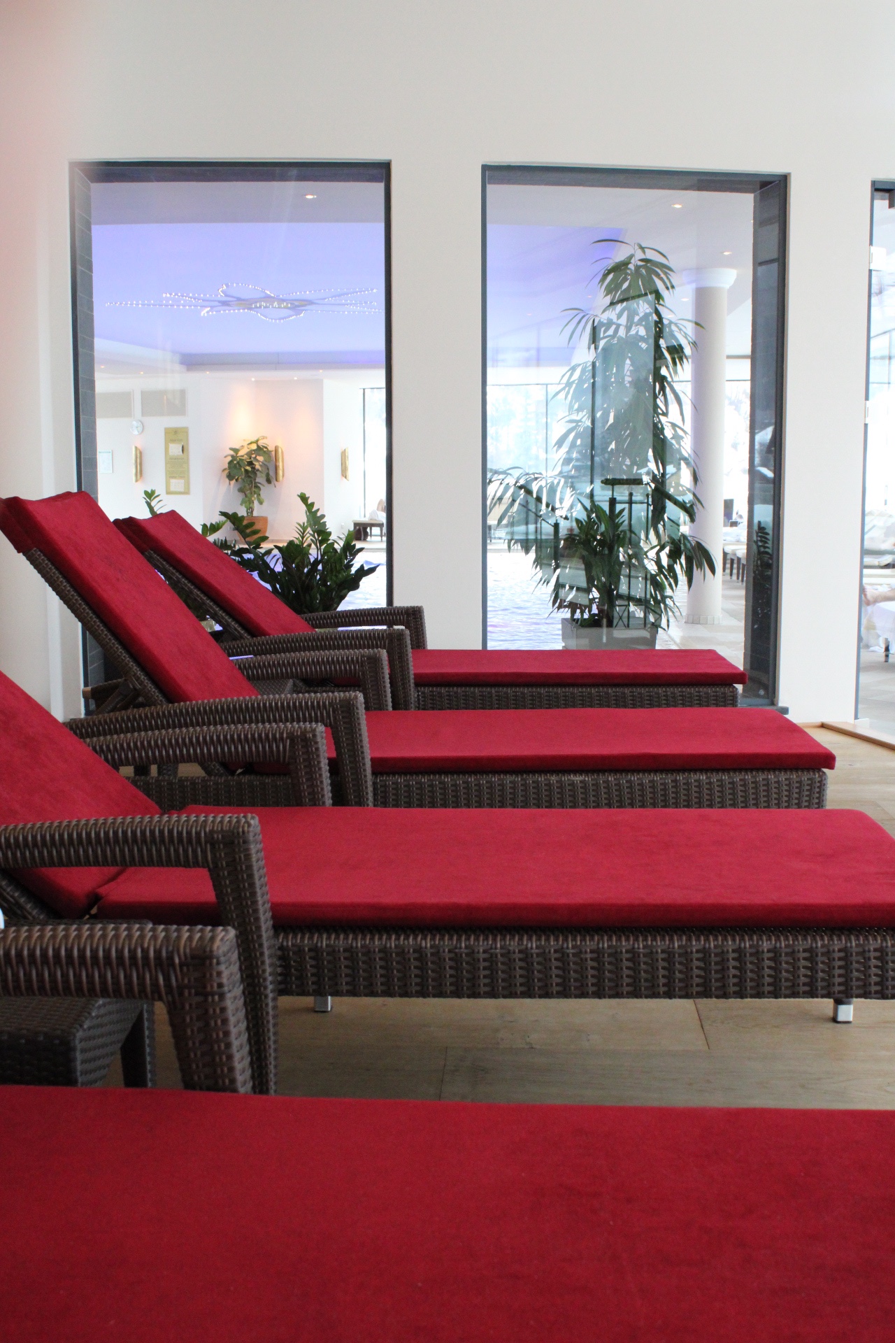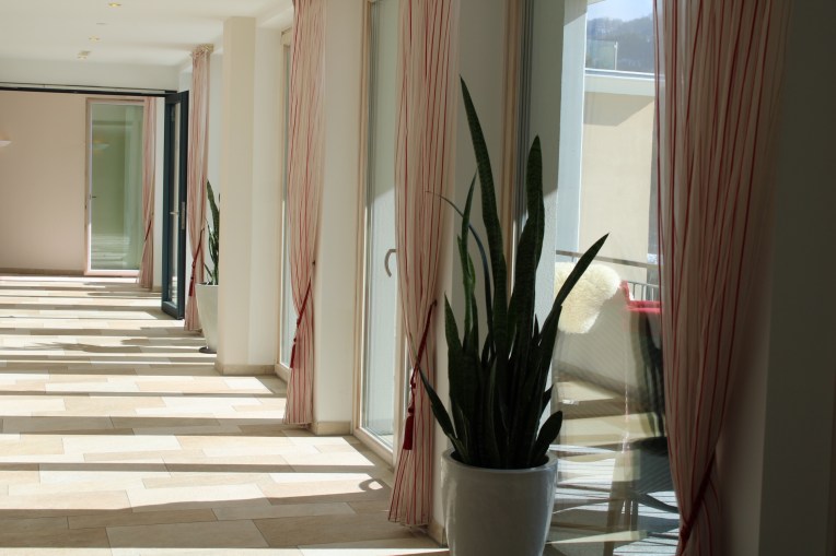 Am Freitag war super Wellness-Ankunftswetter, denn alles war grau und trüb und wir legten uns in den Ruheraum im 6. Stock beim Schwimmbad. Weil wir allein dort waren, war das mit dem „Ruhe“raum natürlich eher nebensächlich… schließlich haben vier Ladies einiges zu besprechen!