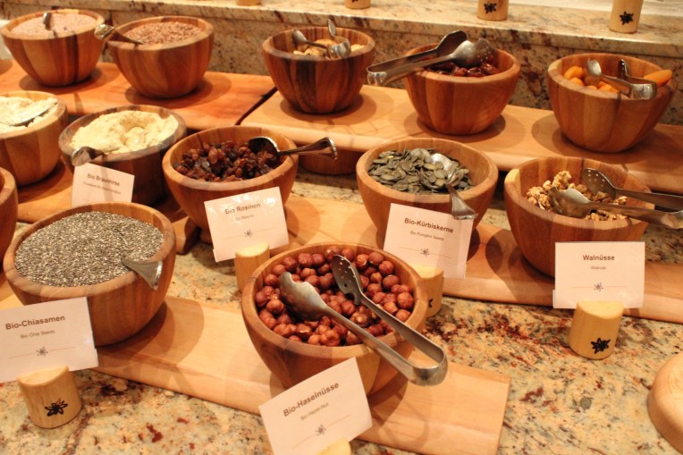 Kulinarisch ist das Edelweiß auch ein Volltreffer! Das Frühstücksbüffet mit dem besten Bircher Müsli aller Hotels (also die ich kenne), die Auswahl an Cerialien und Brotsorten, frischem Obst und Gemüse lassen den Tag perfekt beginnen. Leckere Säfte, selbstgemachte Marmelade, süße Kleinigkeiten und herzhafte Speckscheiben zum Rührei und ein Koch, der einem seine Omelettträume erfüllt oder auch einen Crepes zaubert – fürs Frühstück planen wir immer genügend Zeit und Hunger ein!