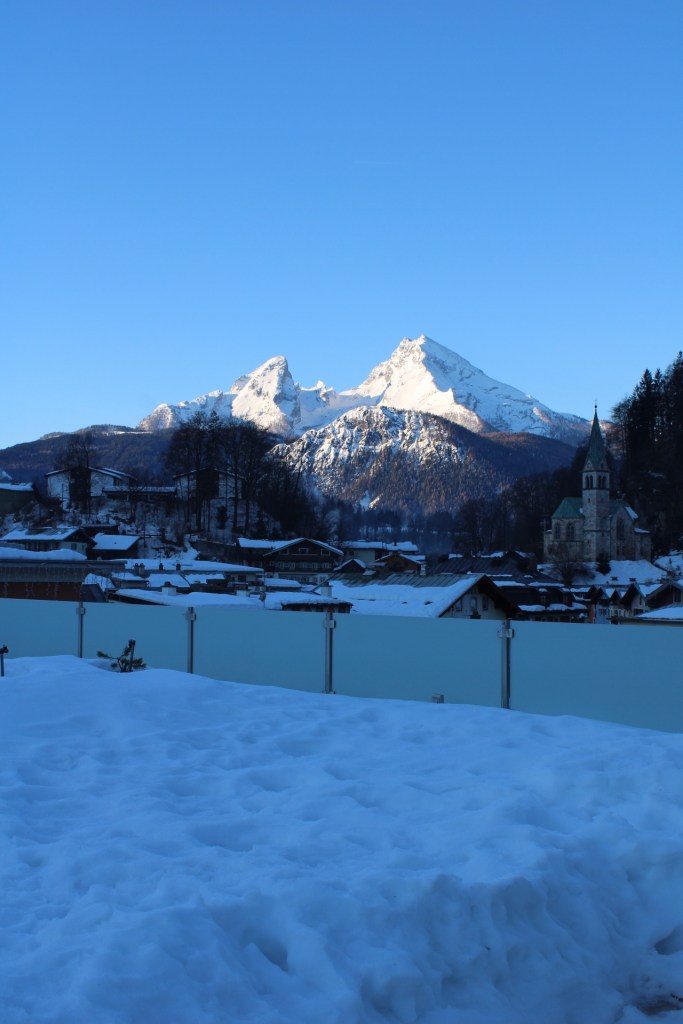 Wir wurden am Freitagmittag dort herzlich in Empfang genommen und konnten direkt unsere Zimmer beziehen. Ich mag die Zimmer im Edelweiß total gerne, man fühlt sich sofort wohl, weil das schöne Holz und die warmen Farben einfach Gemütlichkeit ausstrahlen. Wir hatten sogar Ausblick auf den Watzmann – ein Traum, wenn man morgens die Vorhänge beiseite schiebt und diesen eindrucksvollen Berg erblickt.