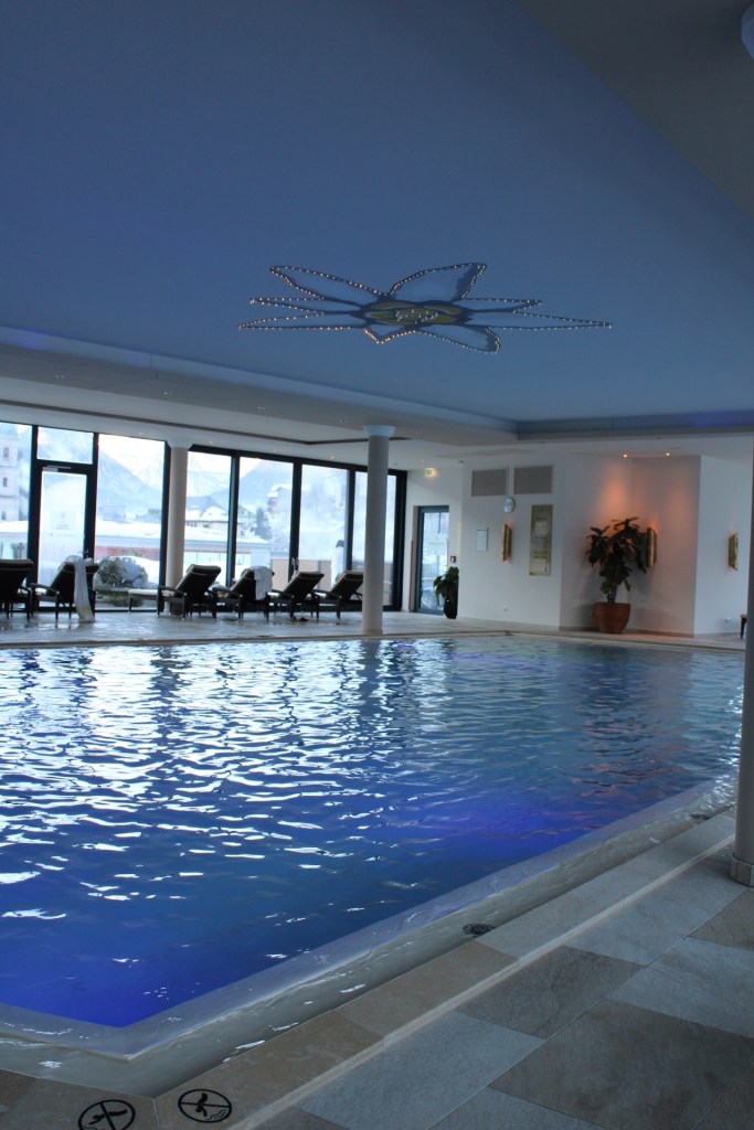 Das Hotel ist wie ich finde ein perfekte Mischung. Ich hab es zu Anfang schon beschrieben, dass ich mal mit meinem Mann, der Familie oder Freundinnen hier war und es war jedes Mal einfach wundervoll! Das kann nicht jedes Hotel leisten, denn entweder fühlt man sich mit den Kindern nicht wohl oder es hat zu viele davon 🙂 Das Edelweiß schafft hier eine Mischung, die ich liebe. Zum Beispiel durch die Aufteilung des Restaurants in mehrere Bereiche verteilen sich die Gäste angenehm. Für die Kinder gibt es den kostenlosen Kinderclub, mit einer superlieben Betreuung, sodass die Eltern in Ruhe essen können oder über den Tag zu ihren Behandlungen und in die Sauna. Und auch in einer Mädelsgruppe oder als Paar fühlt man sich hier einfach wohl. Wer Ruhe sucht, findet diese und wer noch auf Gesellschaft Lust hat, der schaut in der Bar vorbei.