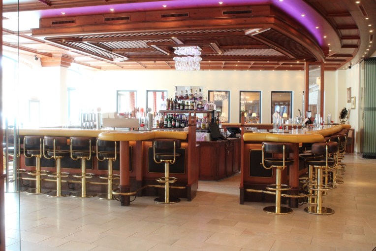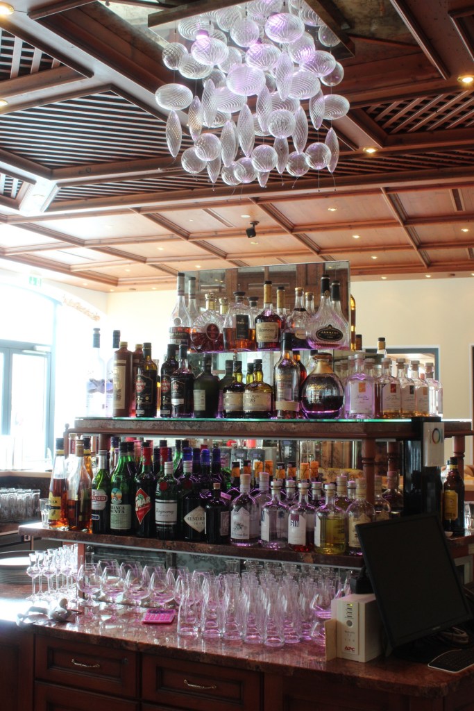 Ganz wunderbar ist die Panoramabar direkt angrenzend ans Schwimmbad, wo man sich im Bademantel entspannt setzen und Kaffee trinken, Kuchen essen oder einen Snack für zwischdurch bestellen kann.