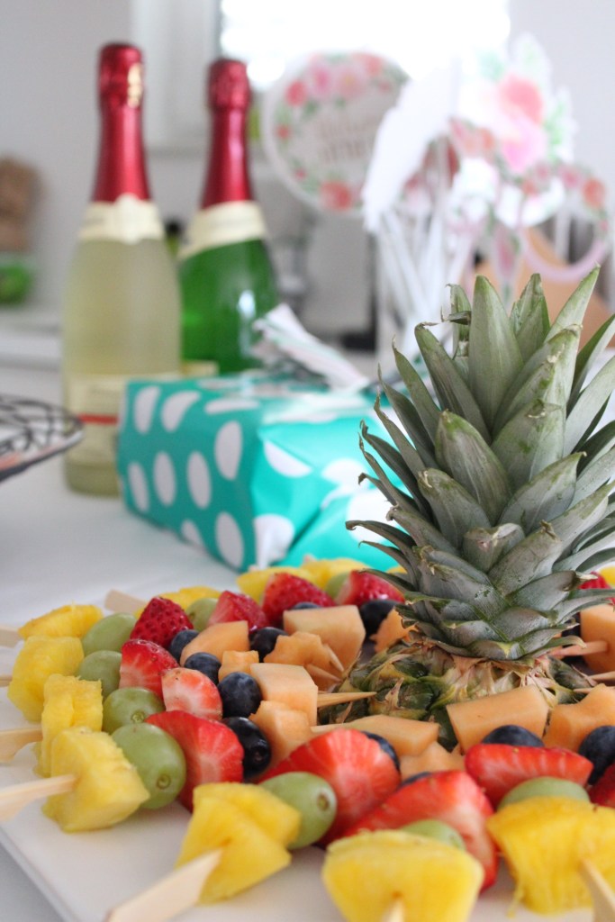 Die Party wurde wie es sich gehört total geheim gehalten! Ihr Mann war eingeweiht und half uns mit Ablenkung und Vorbereitung wie er nur konnte. Alle Mädels, die ich im Kopf hatte für die Party, sagten sofort zu und boten direkt ihre Hilfe an, sodass jeder was beisteuern konnte. Sekt, alkoholfreier Sekt, Gebäck und Kuchen, Ideen, Blumen, Fruchtspieße und Geschenke – alle halfen mit und so trug jeder seinen Teil für das Gelingen einer wunderschönen Party bei! Danke an die Mädels an der Stelle – ihr seid toll!