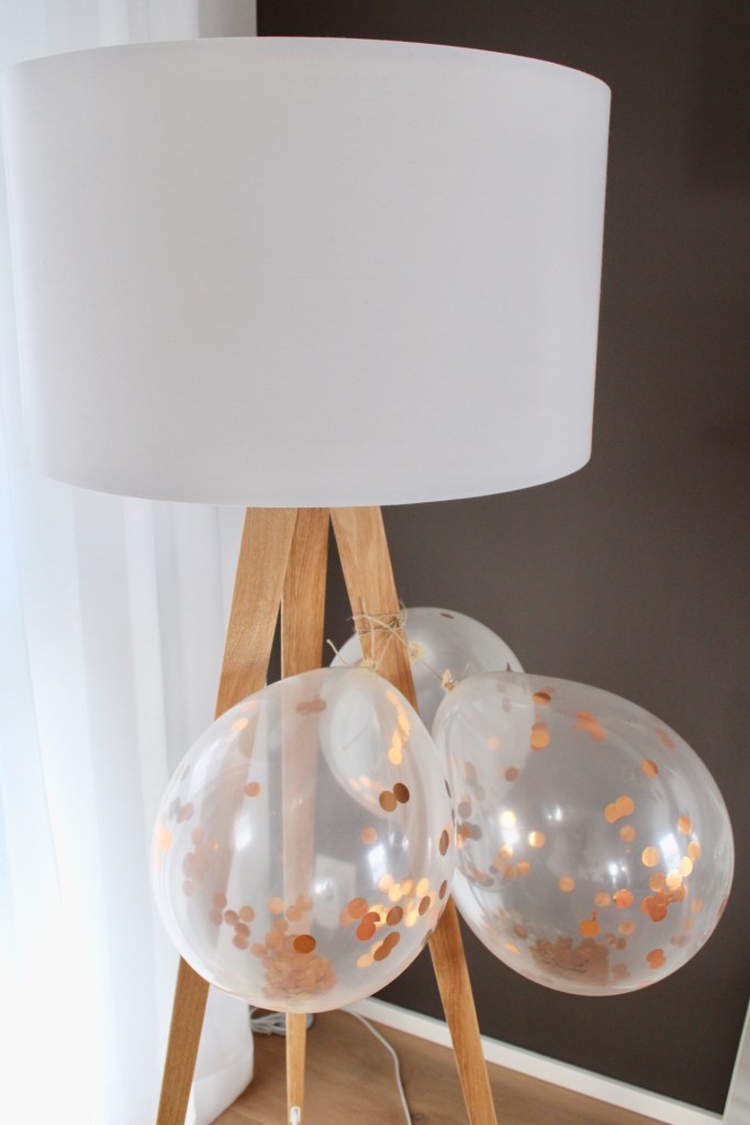 Die Wohnung schmückten wir noch mit Pompoms, Luftballons, Dekofächer mit Goldrand und den Gadgets für die Party. Und für Bell gab es noch eine Schärpe – damit man sie auch gut erkennen kann 😉