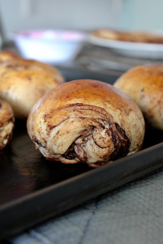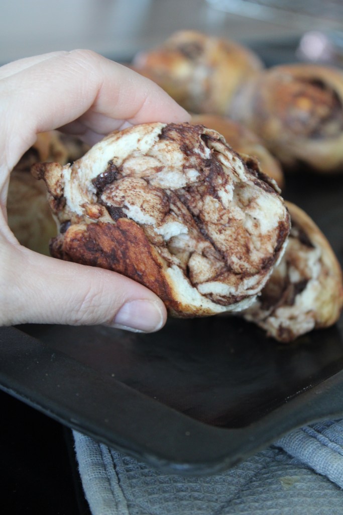 Und noch eine kleine Randbemerkung: Unsere Brötchen sehen anders aus als geplant, denn Valentina hat die Schokotröpfchen etwas voreilig in den warmen Hefeteig gegeben und nochmal mit dem Knethaken in der Küchenmaschine eingearbeitet. Tja, selbst ist das Kind. Darum sind die etwas verlaufen….tut dem Geschmack aber keinen Abbruch!