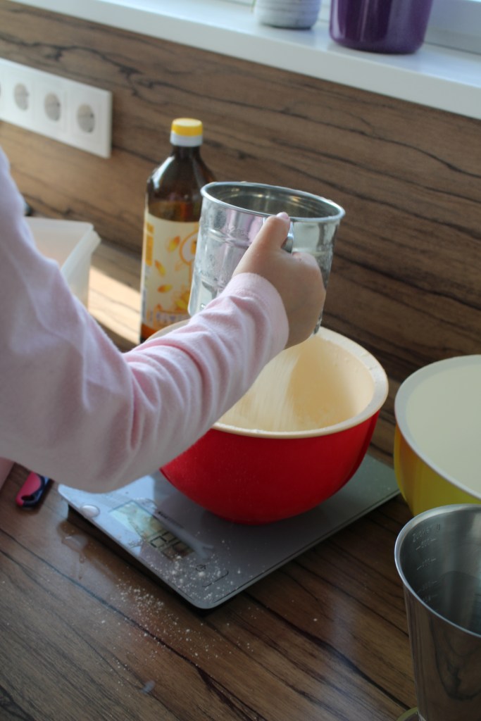 Also backten wir beide heute Morgen in aller Ruhe leckere Schokobrötchen, solange Theo im Kindi war. Wie groß Valentina ist, fällt mir immer besonders auf, wenn wir Zeit zu zweit verbringen. Wie sie selbst alles herrichtet, die Zutaten abwiegen möchte, Eier aufschlägt…einfach zauberhaft! Und: die Sauerei wird immer weniger 🙂