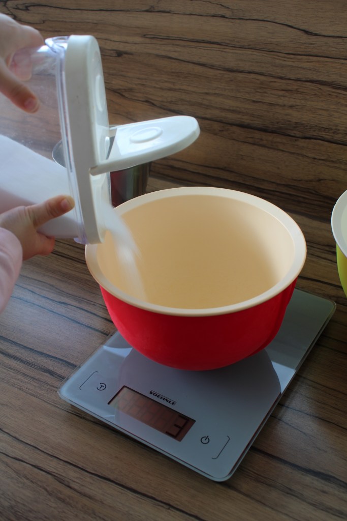 Seit Kurzem sind wir übrigens stolze Besitzer der neuen Küchenwaage von Soehnle, der „Page Aqua Proof“. Und über diese Kooperation hab ich mich besonders gefreut, denn unsere alte vom Discounter wurde alle 2 Jahre ausgetauscht und wackelte wie ein Kuhschwanz. Der Knaller an der neuen Waage ist, dass sie nicht nur unter fließendem Wasser abgewaschen werden kann, nein, sie kann direkt mit in die Spülmaschine. Die ersten Male hab ich sie nur abgewaschen, bevor ich mich traute sie in die Spülmaschine zu stellen. Meine Sorge war total unnötig und mittlerweile kommt sie da öfter rein, eben immer, wenn sie stark verschmutzt ist. Heut hätten wir sie auch spülen können, aber Valentina soll sich ja schonen und ich helf ihr dabei solidarisch 😉