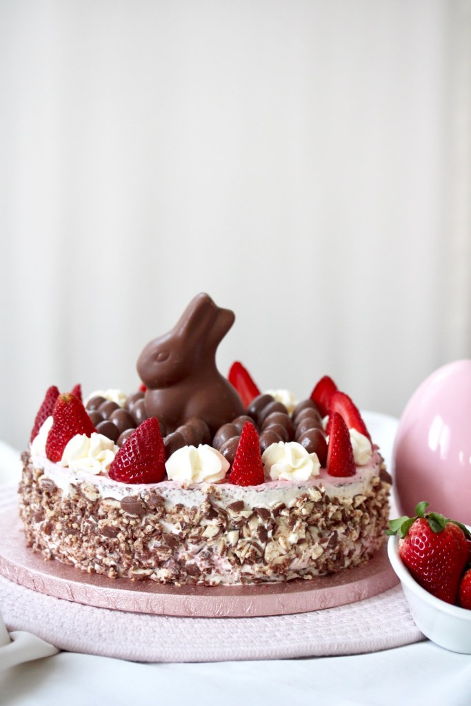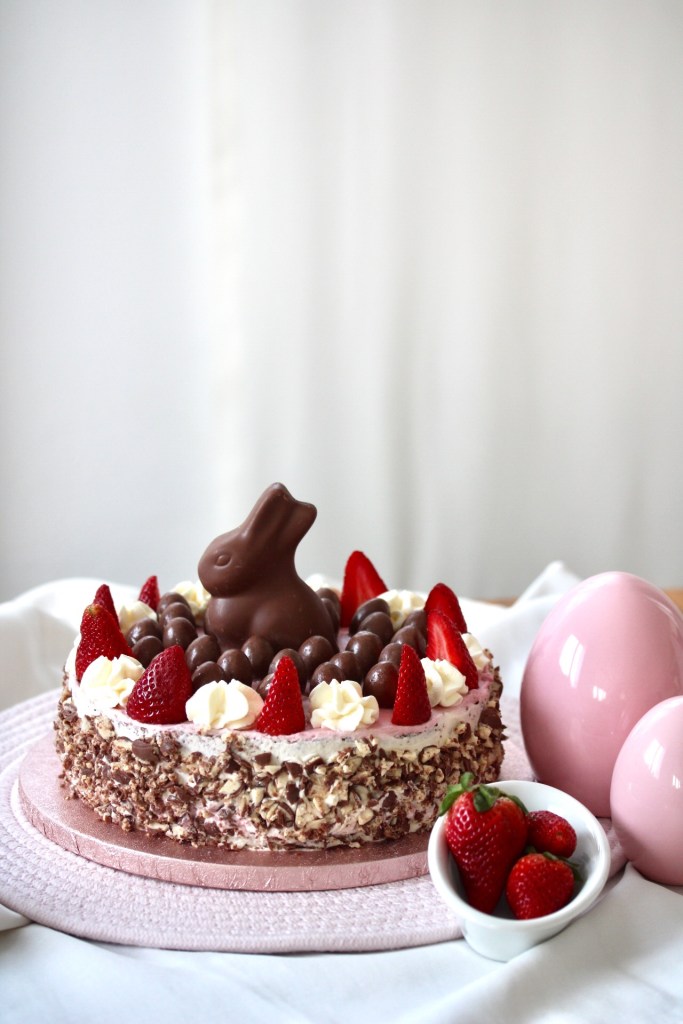 Mein Rezept ist als After-Osterrezept sogar fast noch besser, weil ihr einen Teil eures überfüllten Süßigkeitenvorrats hier verwerten könnt. Dann zählen die Kalorien auch nur halb, weil man ja was Gutes tut;) Typisch für Osternestsüßigkeiten sind ja jegliche KINDER-Produkte (Werbung wegen Nennung, keine Kooperation o.Ä.) und diese können hier alle verwertet werden – als Beispiel hab ich die Schokobons eingebaut! Aber auch Kinderriegel oder Bueno passen wunderbar zu diesem Törtchen ❤