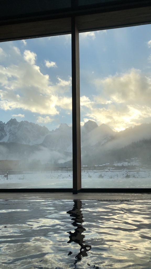 Rückblick: 3. Advent 2019. Wir 5 fahren nach Gosau in Österreich und ein kleiner Traum wird war! Dieses Hotel habe ich schon oft angeschaut und da steht es vor uns: das Kinderhotel Dachsteinkönig!