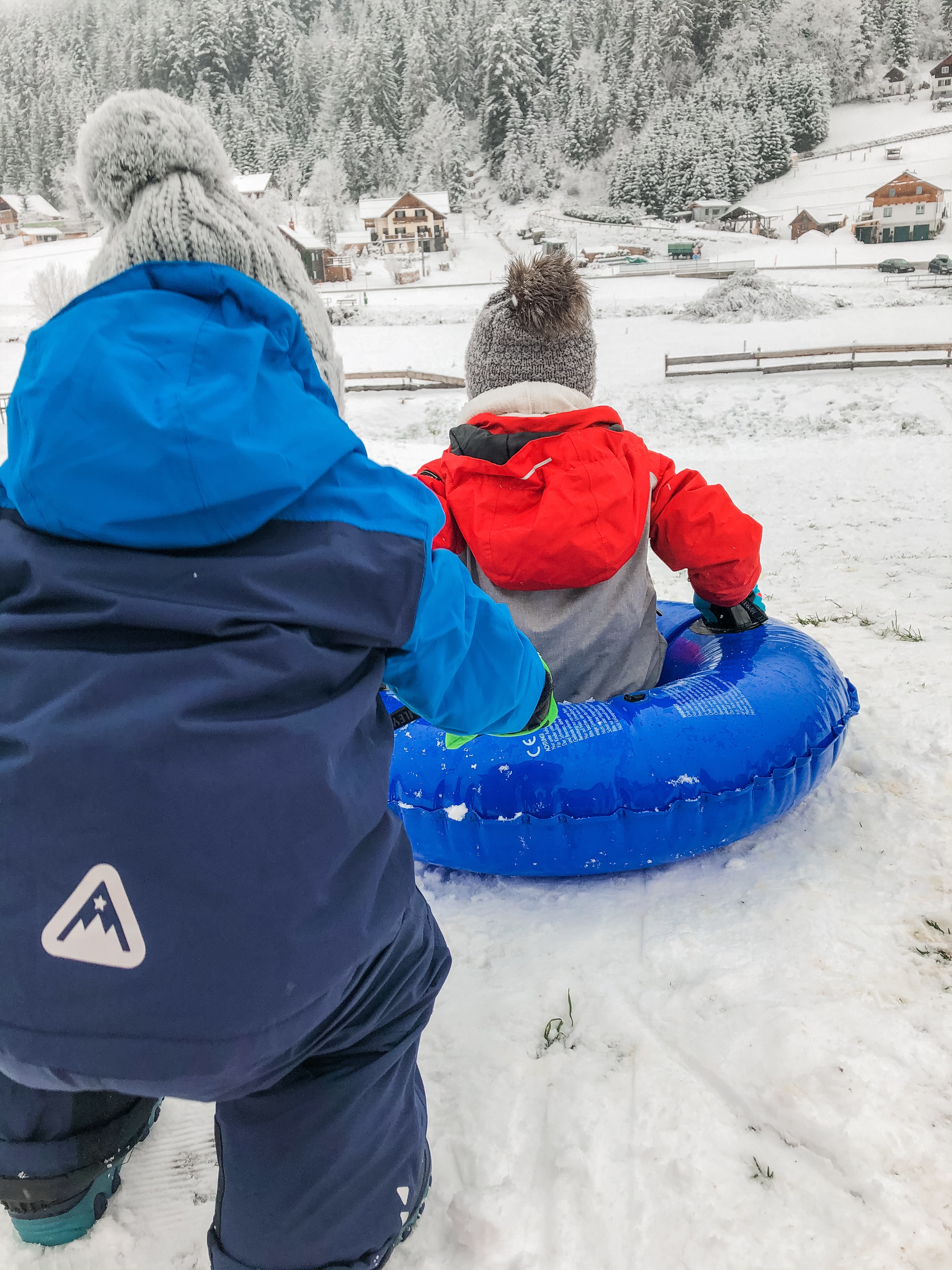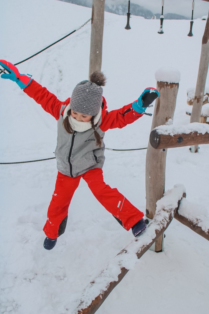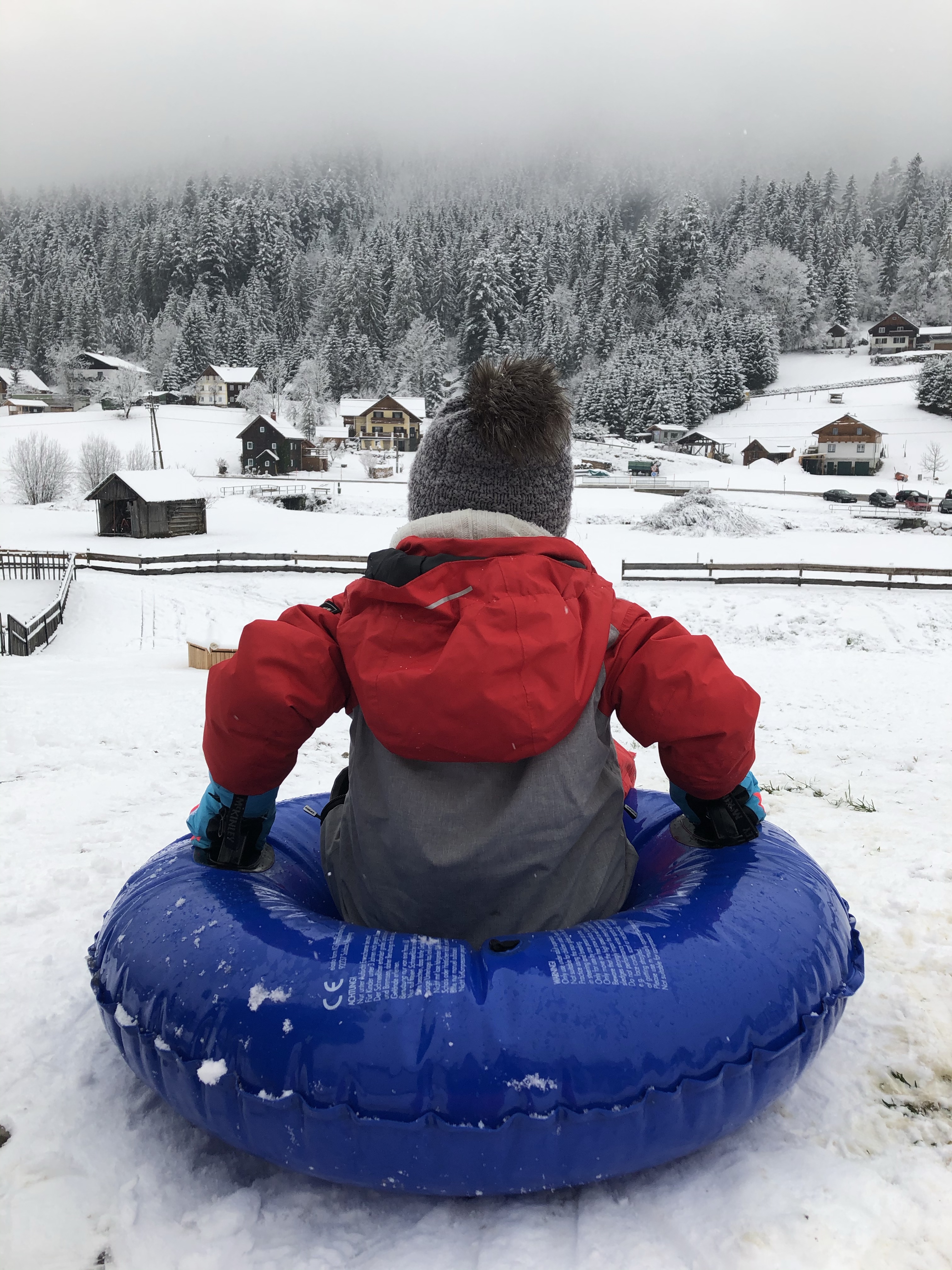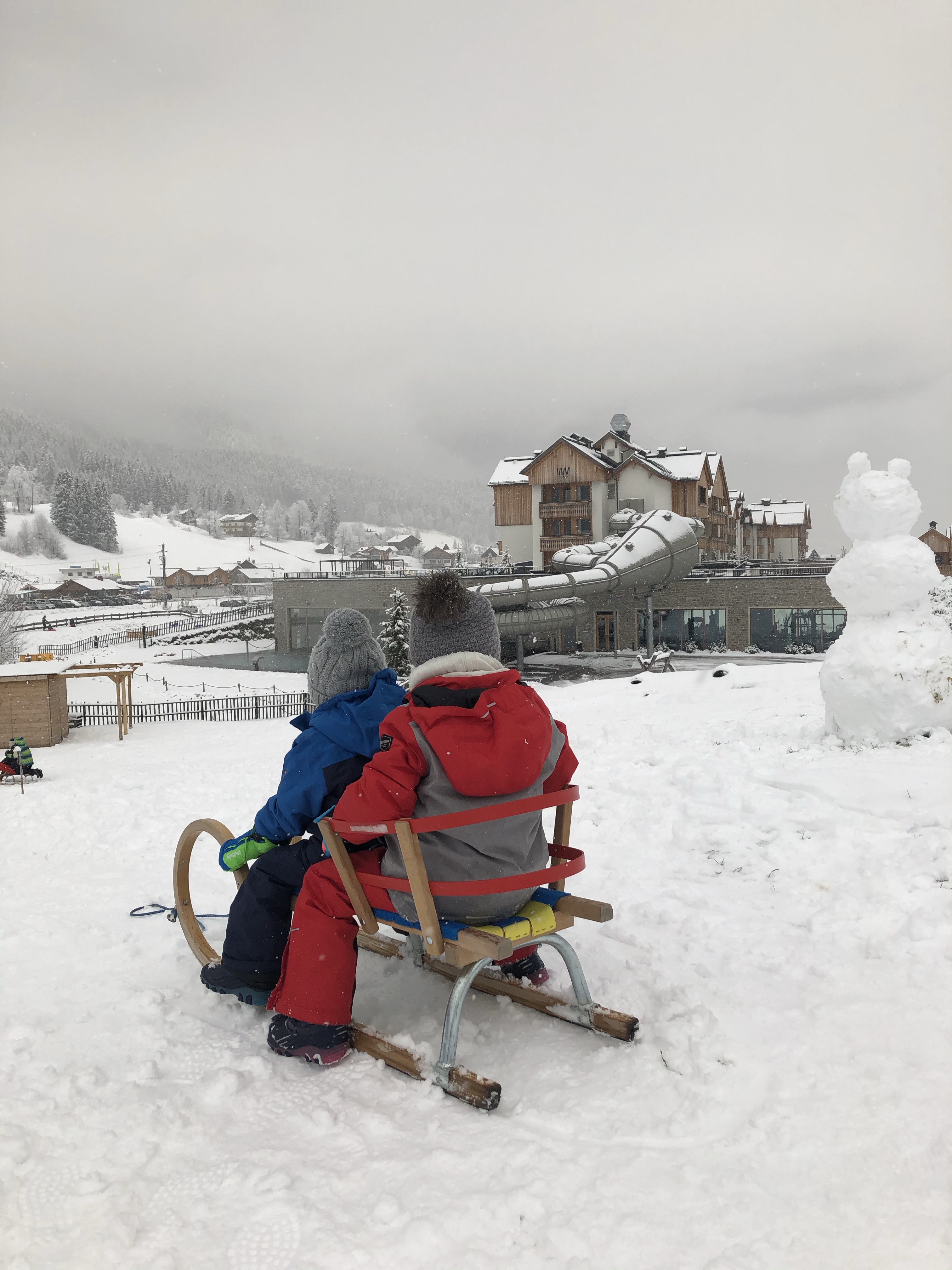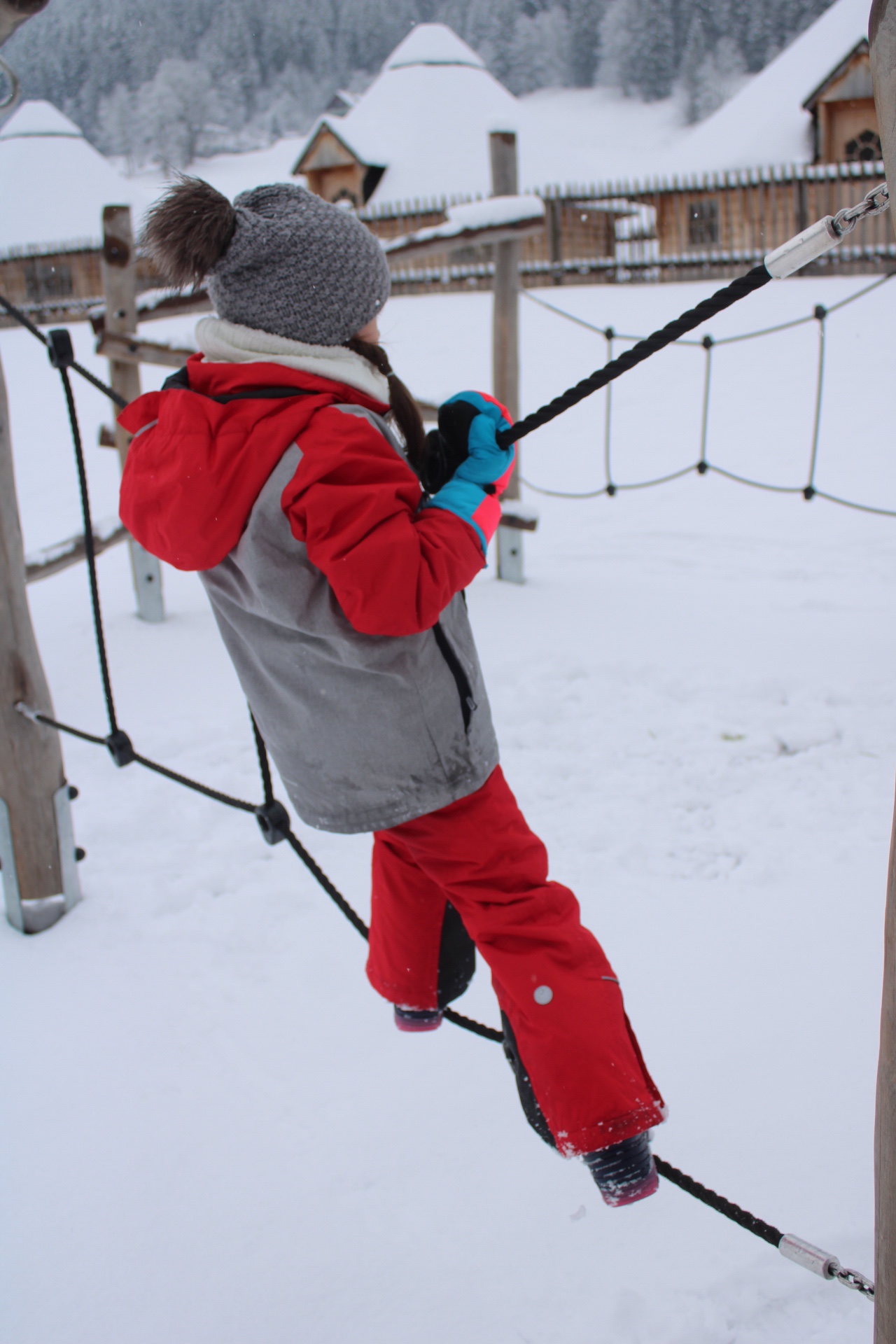 Zum Hotel möchte ich auch noch eine paar Worte schreiben. Hier bleiben wirklich keine Wünsche offen. Die Eismaschine im Foyer, Ziegen hinter Glasscheiben zum Beobachten, die Angebote für Kinder und Erwachsene – nicht aufzuzählen. Zimmer bis ins kleinste Details durchdacht, sogar mit einer kleinen Spielhöhle und Spielsachen. Das Schwimmbad und die Rutschen sind ein Paradies und die kleinsten können nebenan im großen Babybecken bei weit über 30 Grad planschen und das Wasser genießen. Zu jeder Zeit steht die „Milchbar“ zur Verfügung, denn das Haus ist all inklusiv. Sogar einen Virtual Realtiy Raum bietet das Hotel. Wir wollten eine Runde Schlitten fahren, auch das war kein Problem. Ein Skiverleih mit Bobs und Schlitten ist da. Und das ist noch lange nicht alles ,was das Hotel zu bieten hat.