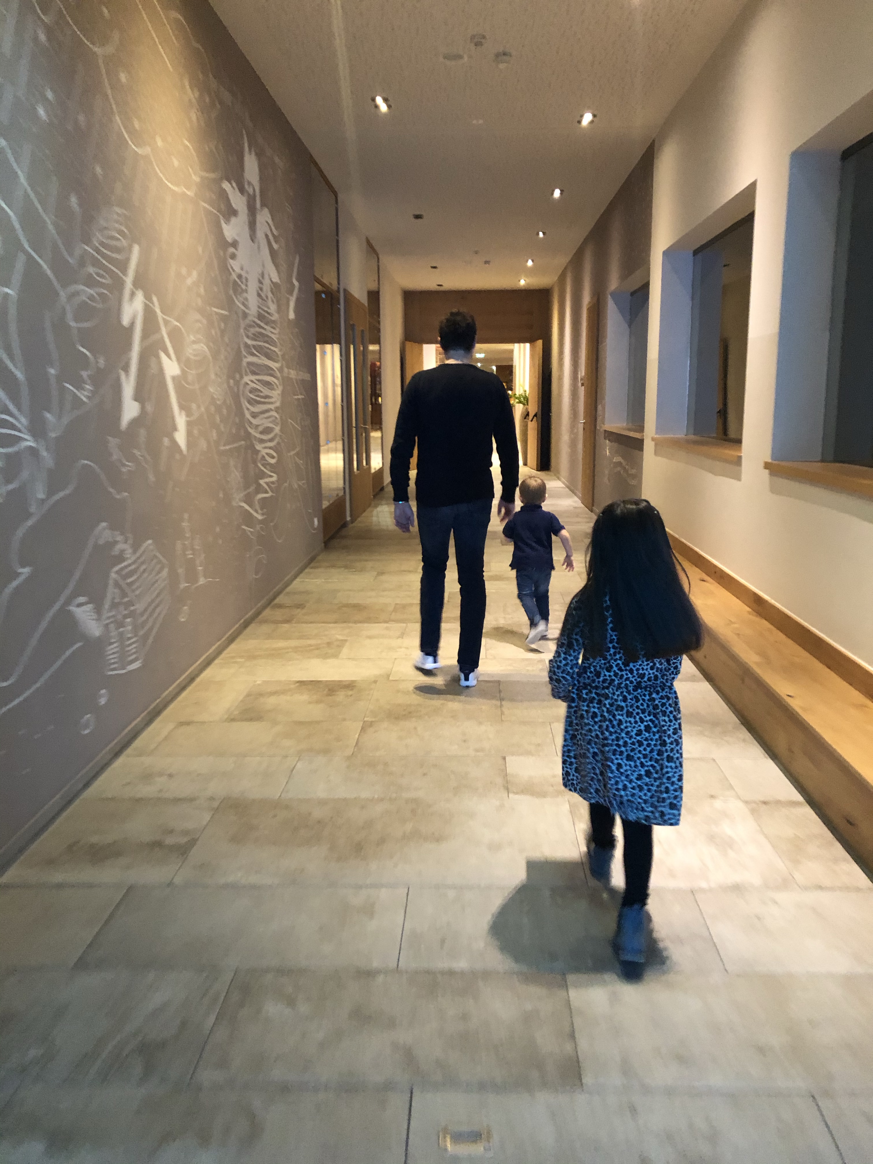 Eine imposante Erscheinung ist es. Das Resort erscheint harmonisch im Landschaftsbild, da es kein riesiges eintöniges Gebäude ist, sondern aufgelockert wirkt durch die vielen einzelnen Häuser, die in Wirklichkeit verbunden sind. Das Gelände ist nicht frei zugänglich, sondern mit einer Schranke gesichert. Alles durchdacht und so wunderschön gestaltet, dass man nur staunen kann. Es ist unser erster Besuch eines Kinderhotels. Mehrmals haben wir uns überlegt, ob wir nicht auch mal in ein Familienhotel oder Kinderhotel fahren sollen, haben uns aber immer für ein „normales“ Hotel entschieden. Schon als ich dieses Resort zum ersten Mal auf Instagram entdeckte, war ich allerdings Feuer und Flamme. Keine kitschigen oder bunten Möbel, kein lautes Kindergeschrei war dort zu sehen und zu hören. Alles sah einfach top gestylt, designed und edel aus. Man sah diesem Hotel seine Einzigartigkeit schon im Internet an und in der Wirklichkeit überzeugte es noch mehr.