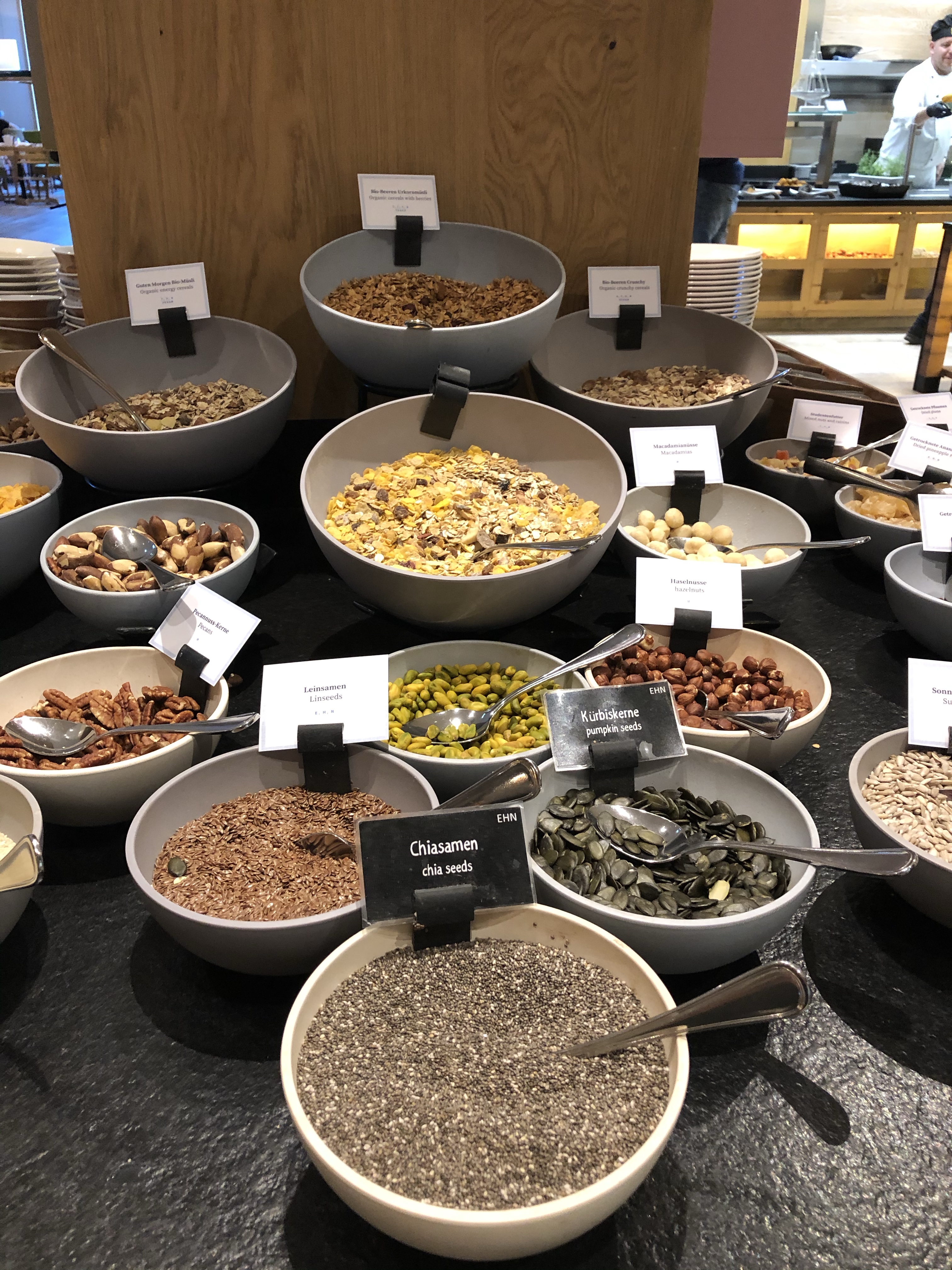 Das Restaurant ist so wunderbar in verschieden gestaltete Bereiche aufgeteilt, dass man gar nicht merkt, wie viele Menschen dort sind und es war nie laut – trotz unzähliger Kinder. Alle Mahlzeiten sind in Buffetform, so hat man keine Wartezeiten und viel Auswahl. Ein Highlight für alle Familien mit Babys: entweder kann man den Brei aus einer Vielzahl von Hippgläschen auswählen oder einen frisch zubereiteten Brei bestellen. Mehr geht einfach nicht.