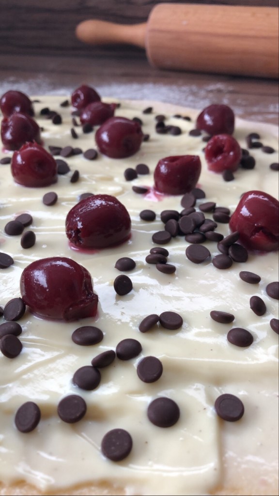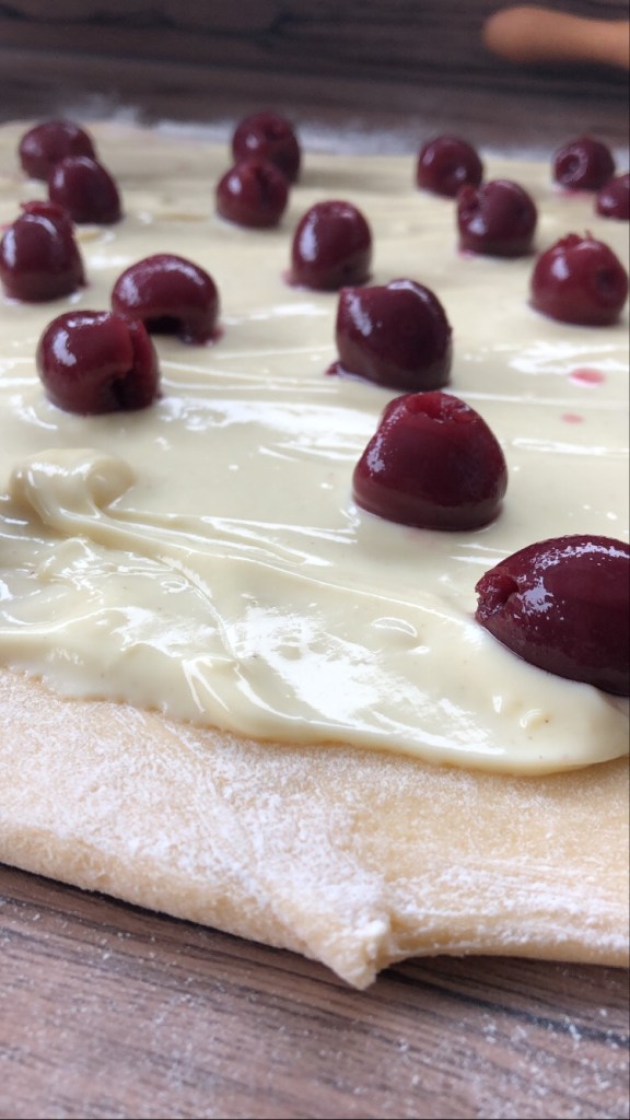 Kurze Vorwarnung: Das Aufrollen des Teiges mit den Kirschen ist etwas tricky. Unten kommen noch zwei Tipps! Und das Schneiden der Schnecken wird ne leichte Sauerei 🙂 Tipp folgt.