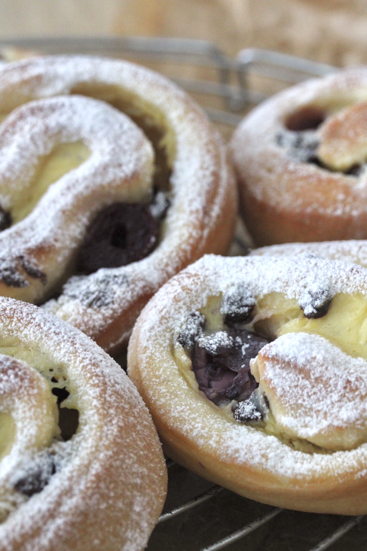 Es folgte die Überlegung, wie die Kirschen in den Schnecken bleiben… mit Pudding. So ungefähr läuft das in meinem Kopf ab, wenn ich neue Rezepte überlege. Zu dem Zeitpunkt ist zwar überhaupt nicht absehbar, ob das dann auch klappt oder gutgeht, aber ein Plan ist ja immer ein guter Anfang.