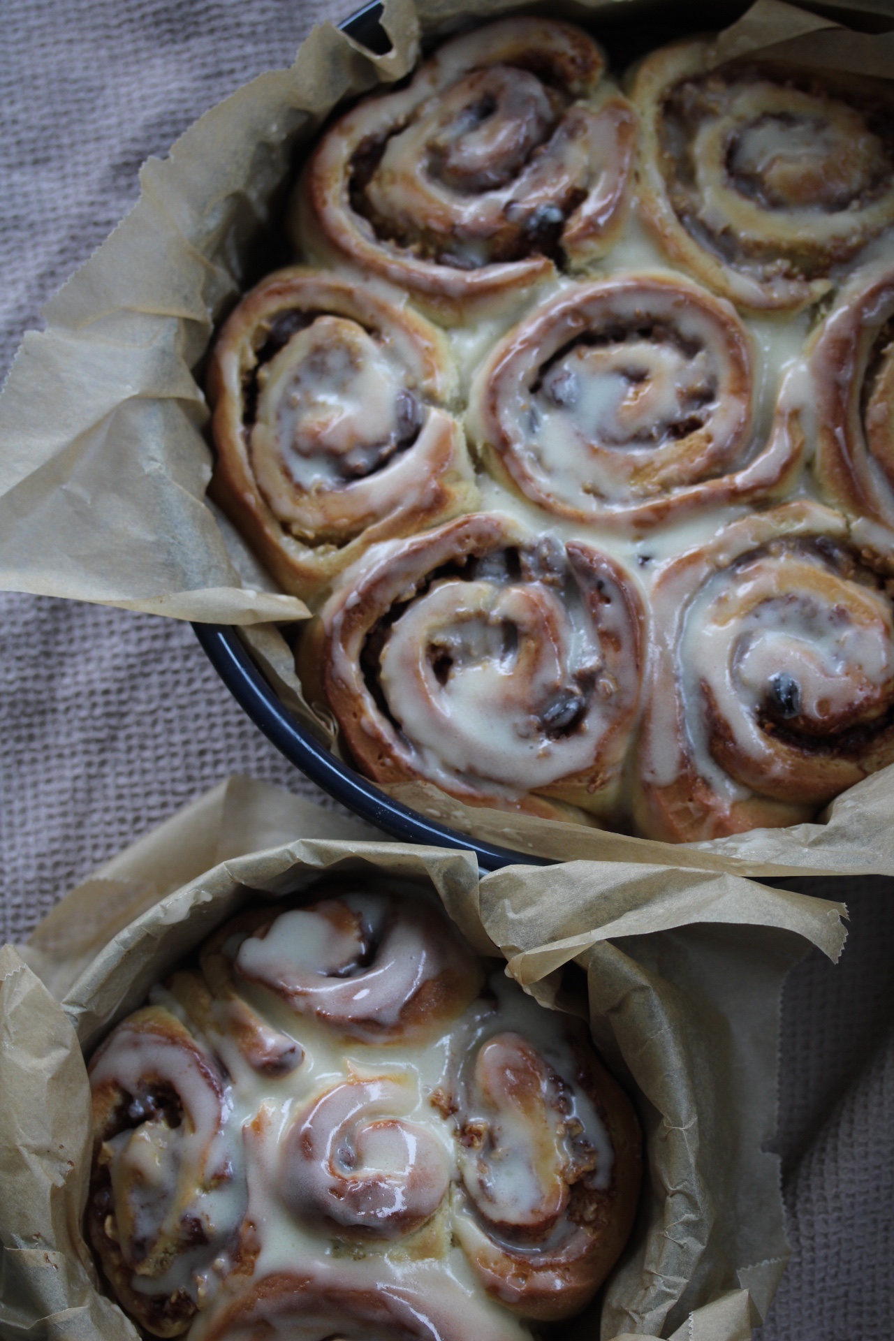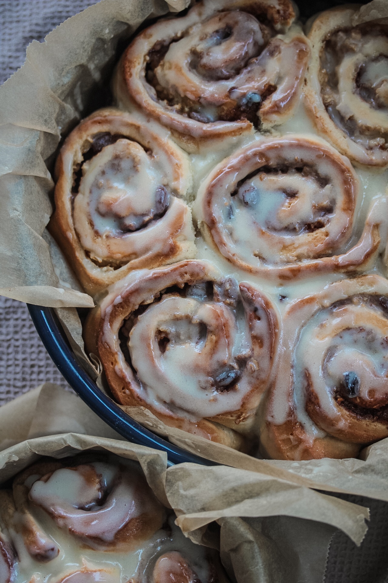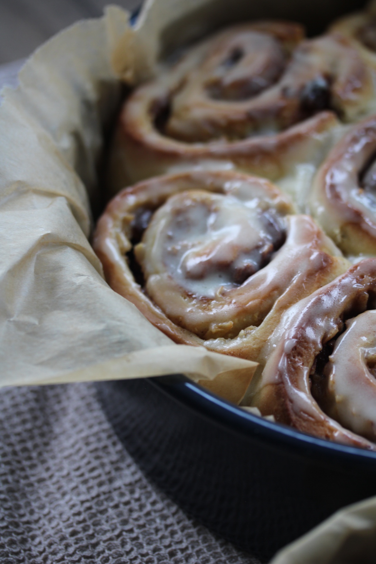 - Die Schnecken mit dem Guss bestreichen, sobald sie heiß aus dem Ofen kommen.