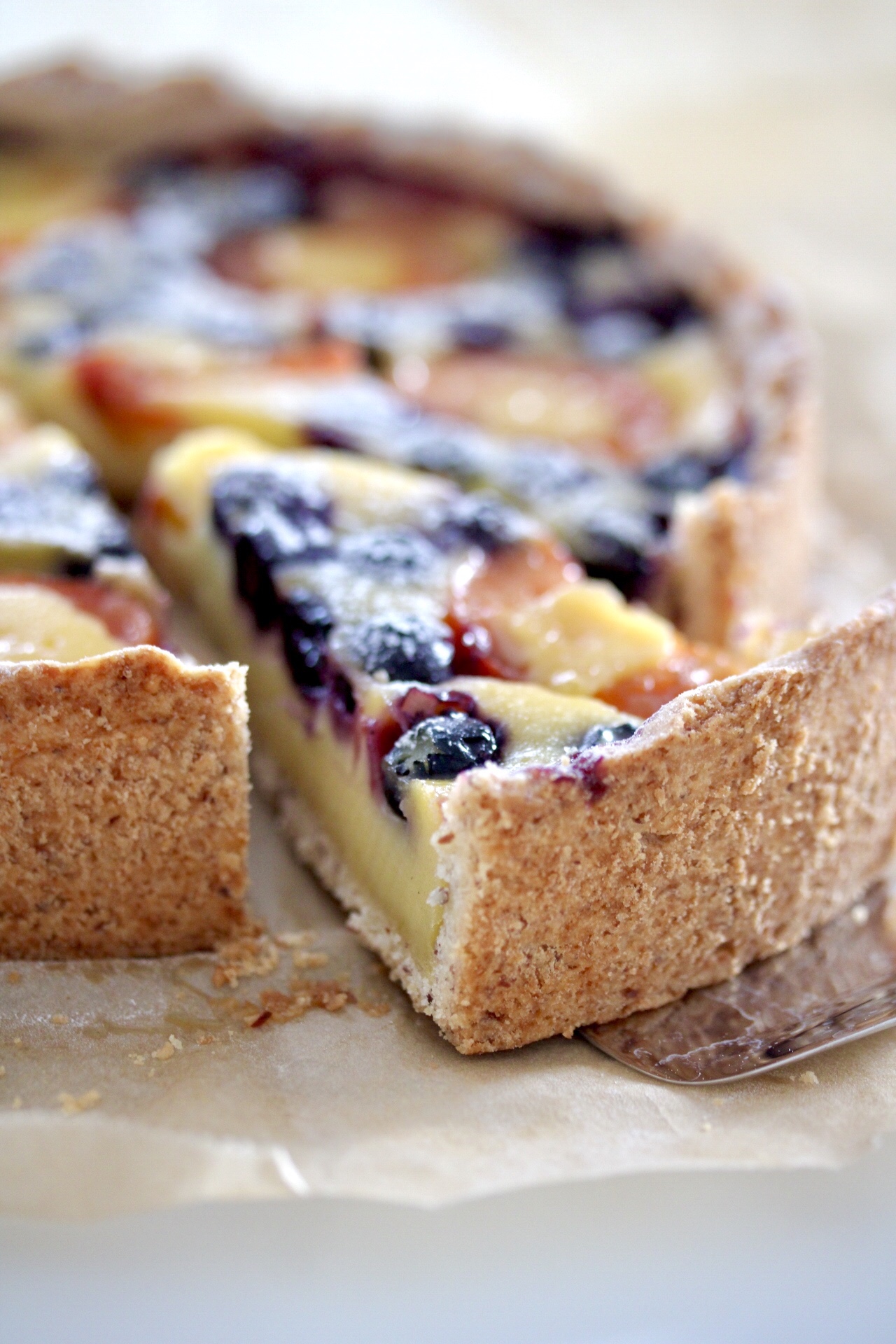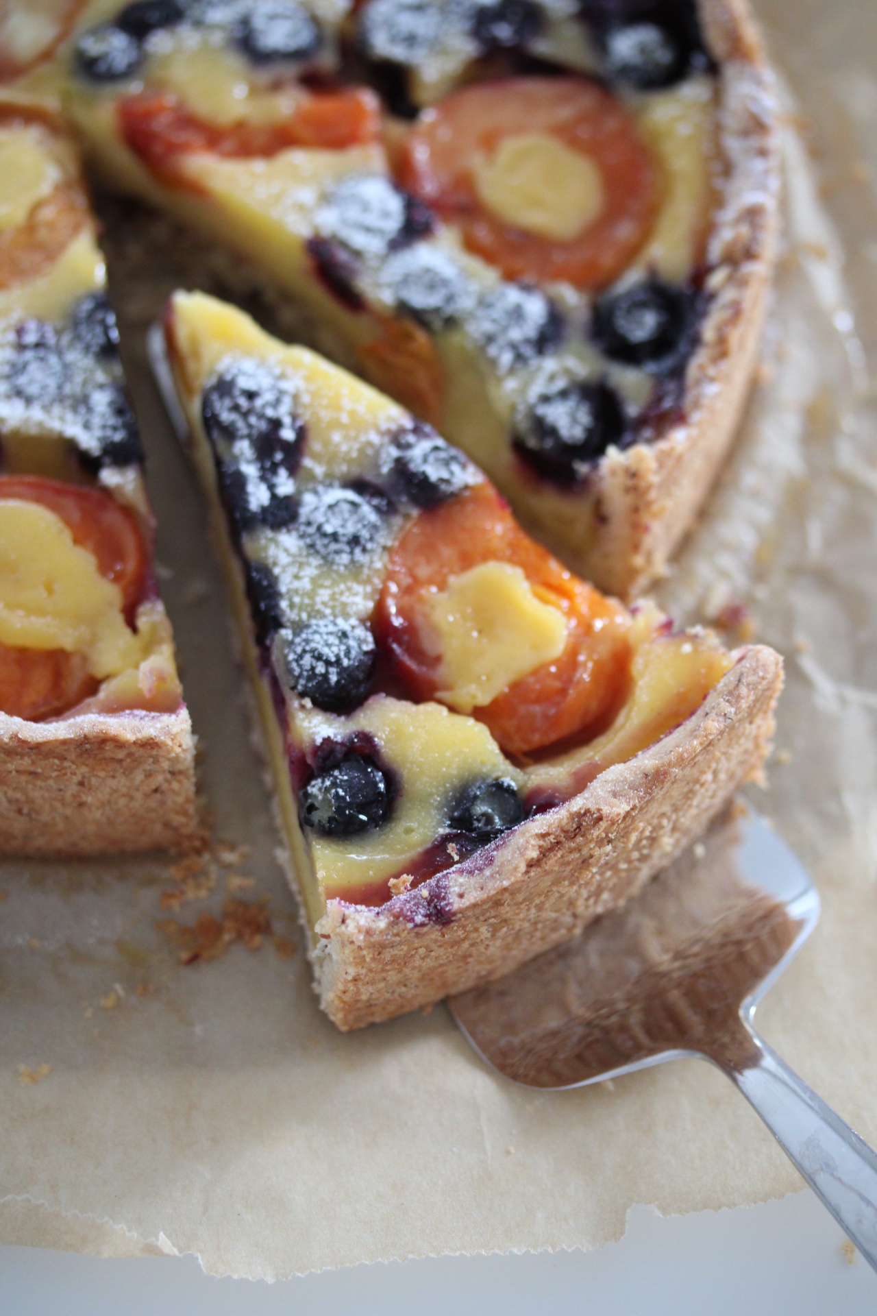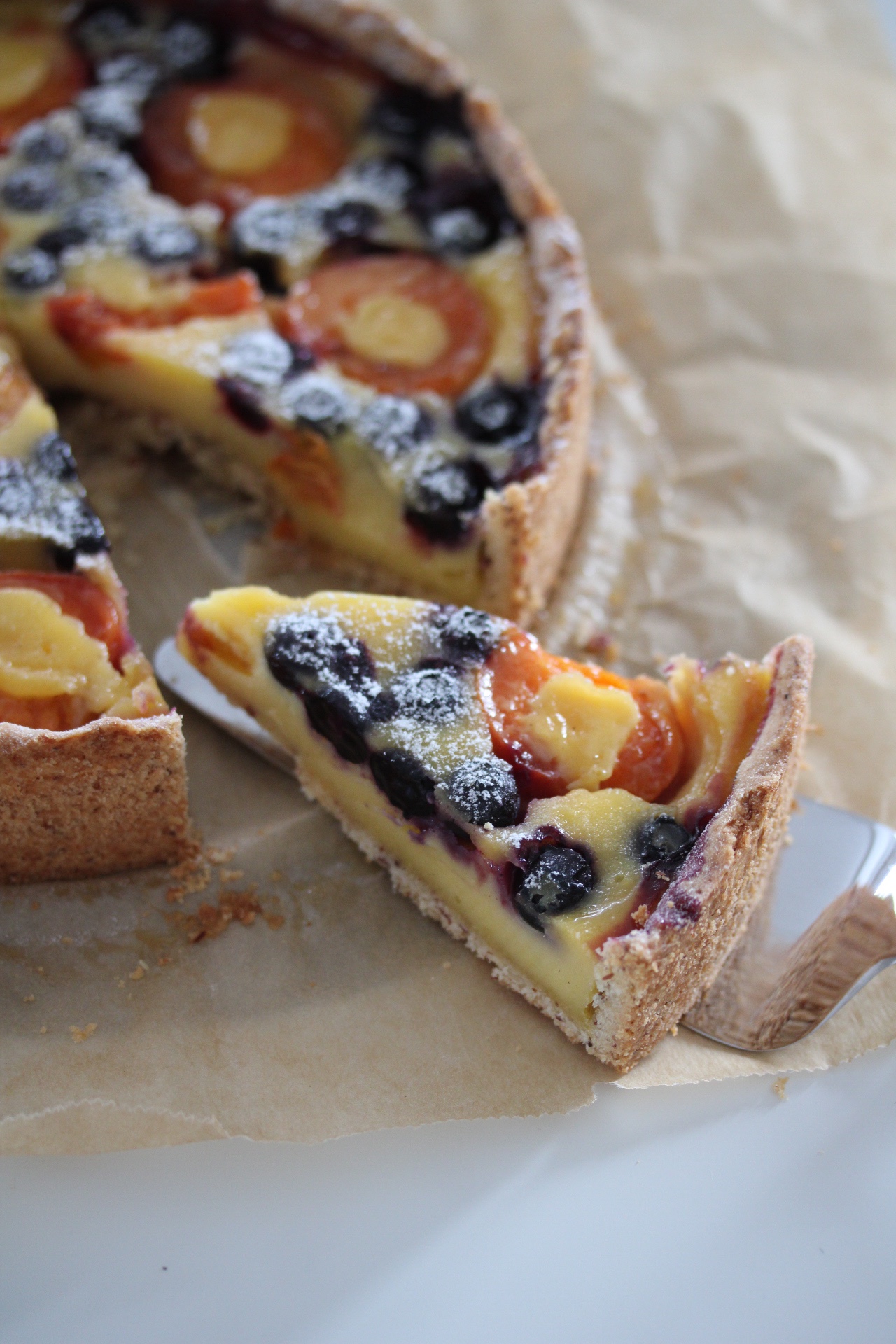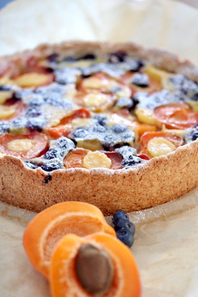 Den fruchtigen Schmandkuchen holt ihr an heißen Tagen am besten immer frisch aus der Kühlung. Er ist trotz Schmand nicht schwer, da er auch nicht hoch ist, sondern eher tarteförmig, wenn er in einer kleiner Backform gebacken oder direkt in der Tarteform gebacken wird. Ihr könnt ihn auch nur mit Marillen oder nur mit Heidelbeeren backen, wenn ihr die Mischung nicht möchtet.