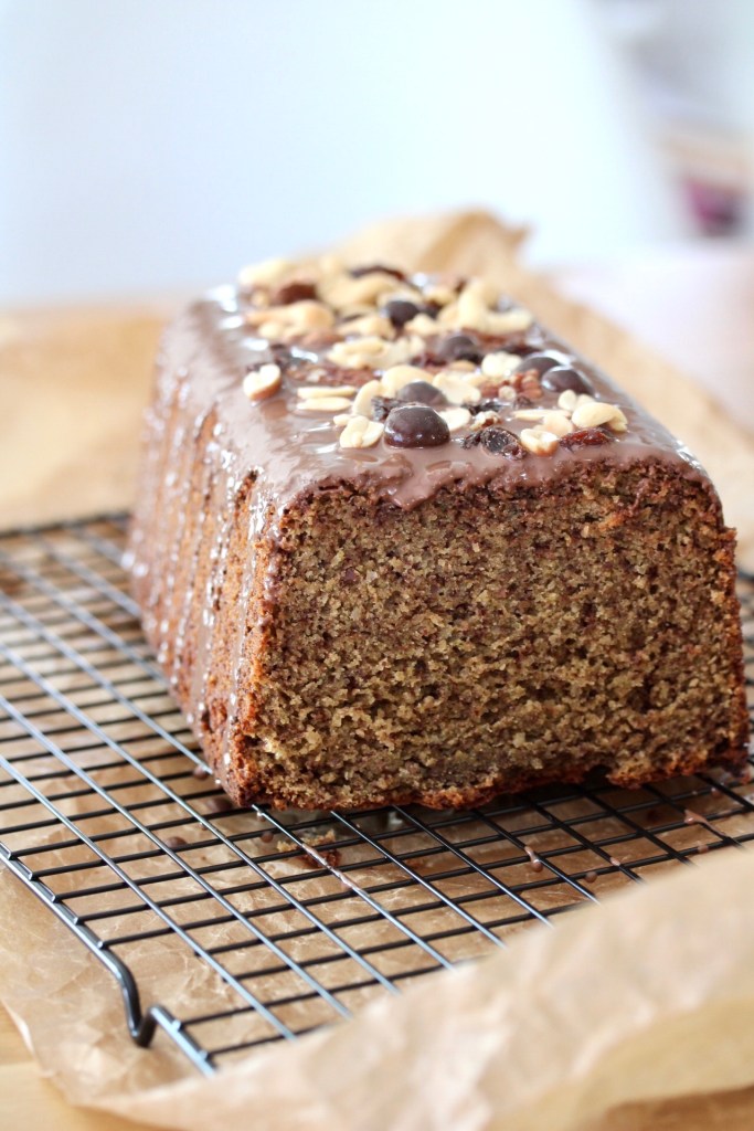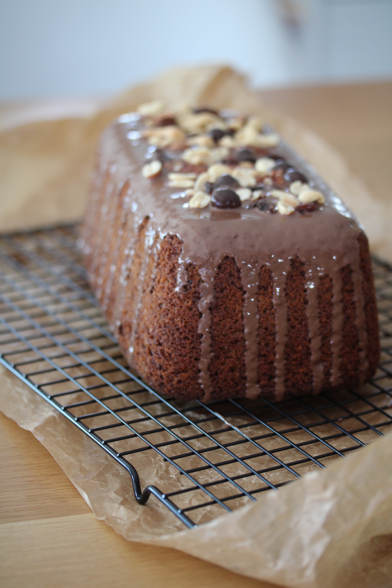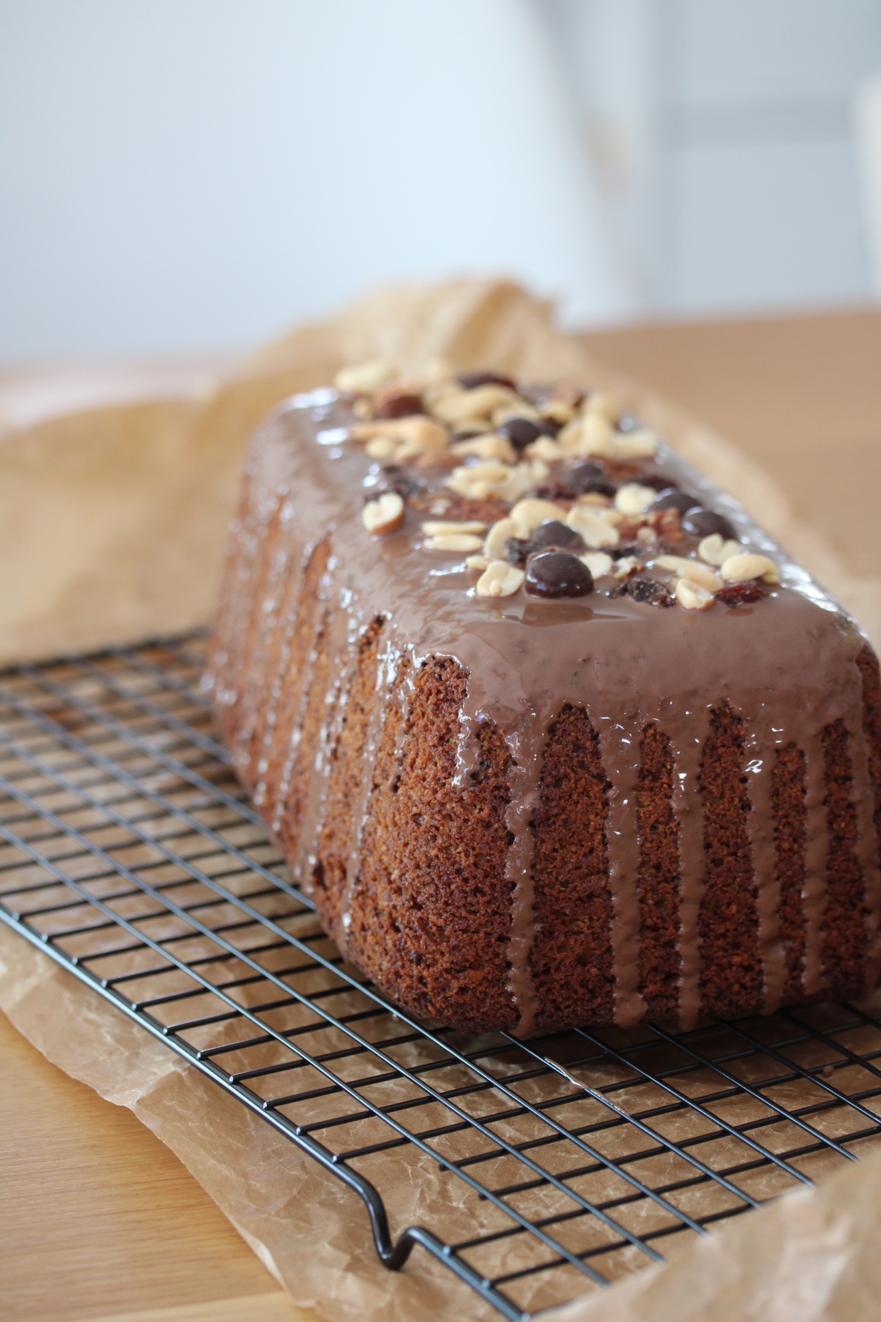 Wenn der Zucchinikuchen ausgekühlt ist, mit der Schokoladenglasur überziehen und direkt mit den Nüssen pimpen. Wer Rosinen mag, sollte unbedingt eine Mischung aus Rosinen und Nüssen nehmen, die passen so gut zum Kuchen!