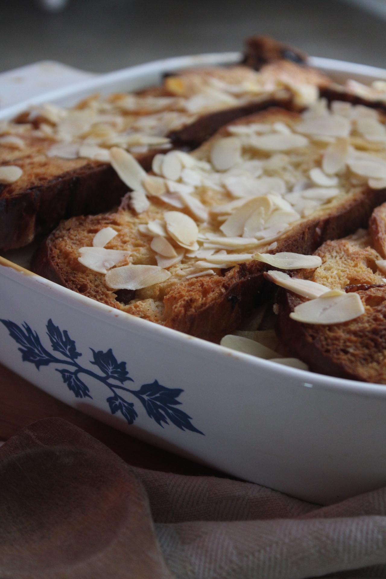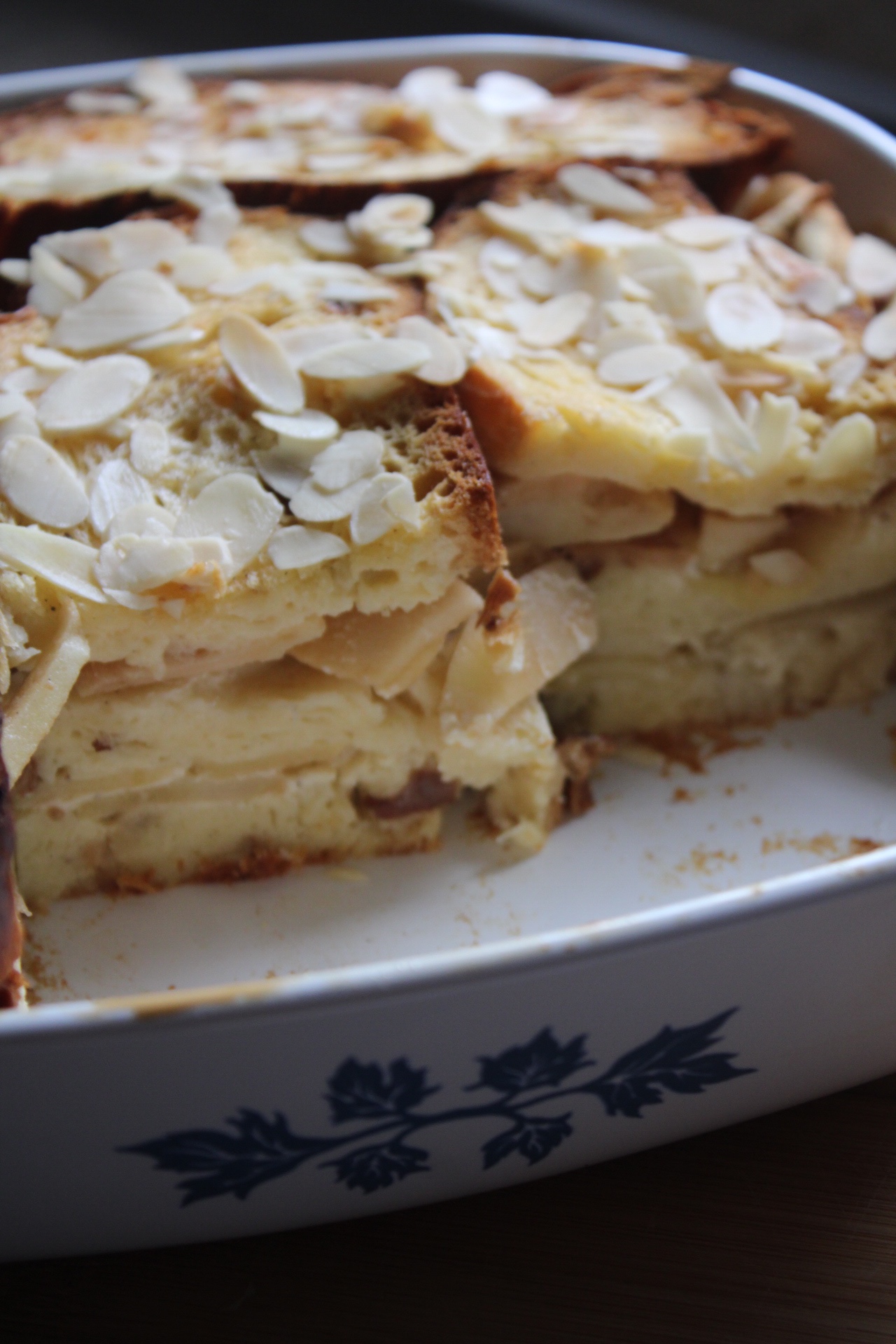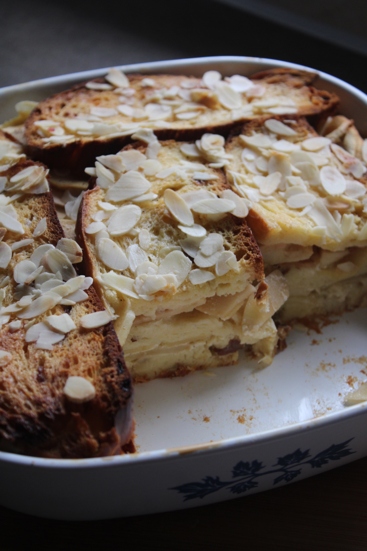 - Am Ende streut man die Mandelblättchen auf den Ofenschlupfer und setzt Butterflöckchen darauf.
