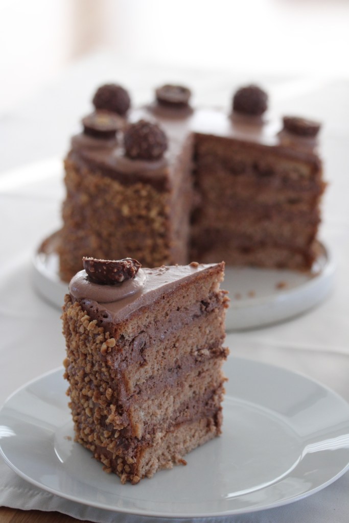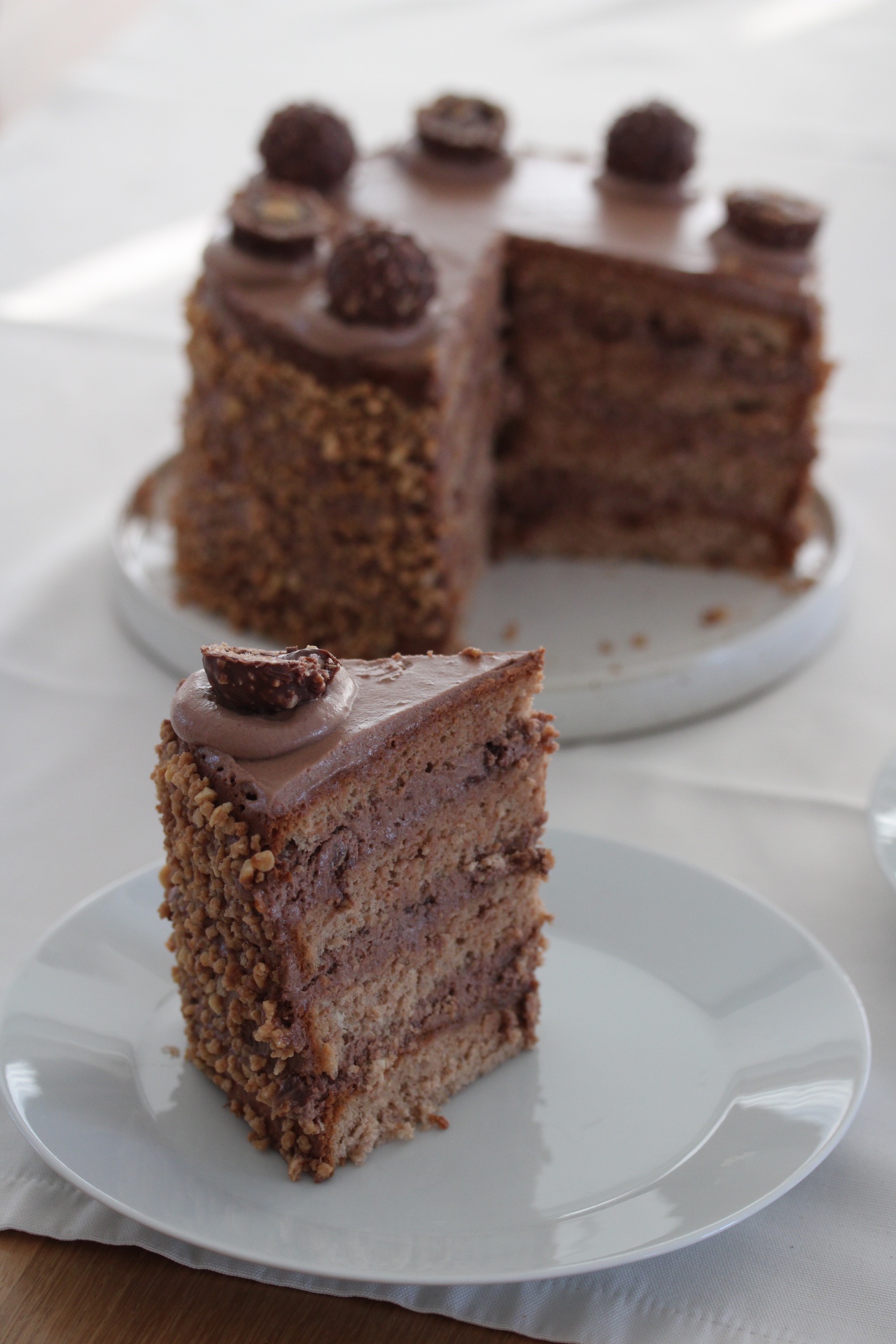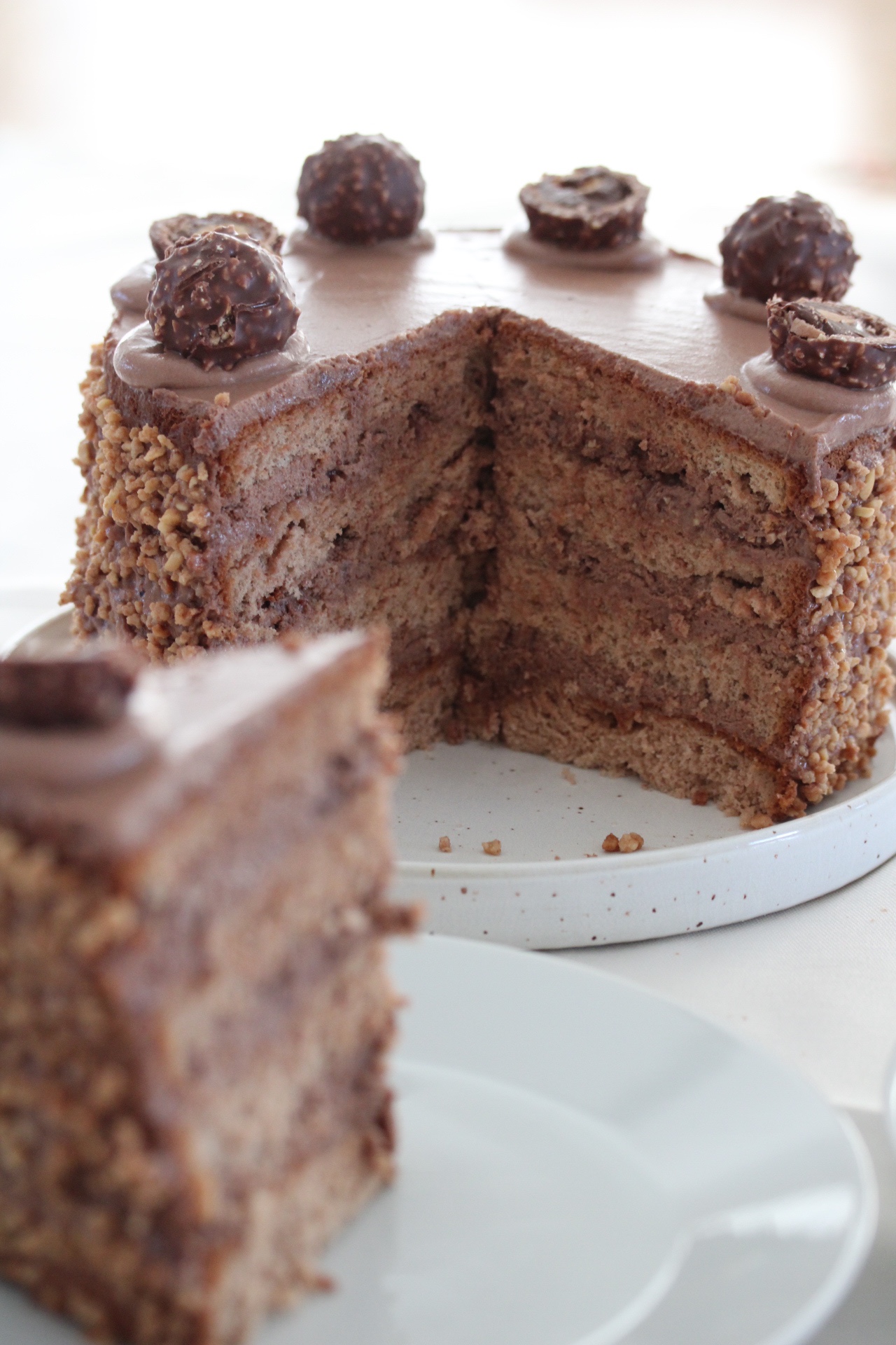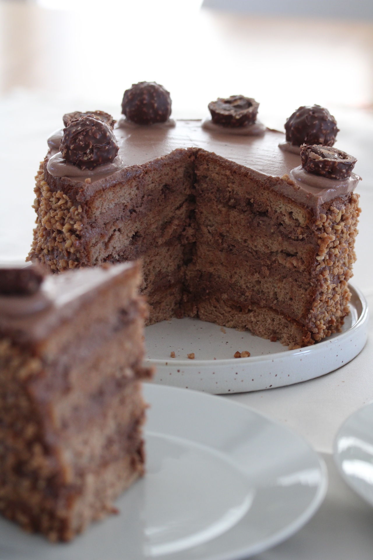 Dieses Jahr gab es für Manu ein Törtchen zum Valentinstag – nicht in rosa, dafür mit nussig schokoladigen Rocherkugeln!