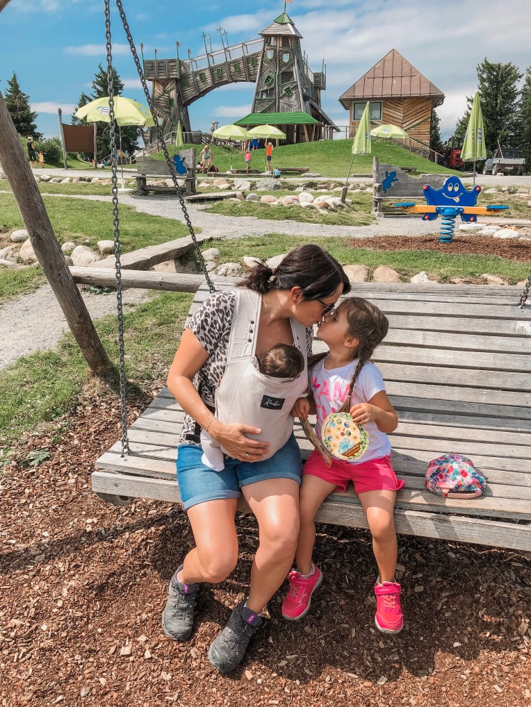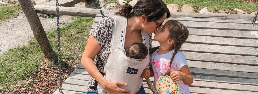 Valentina war ein recht zufriedenes Baby und total happy, wenn sie im Newborn-Set von ihrem TrippTrapp lag und in meiner Nähe war. Ein Wippe hatten wir für sie keine. Allerdings sahen wir, als sie größer war, immer öfter glückliche Babys in schicken Wippen liegen, die sich selbst anschubsten. Also bekam Theo eine Wippe. Er fand das Teil total super und wir auch. So kommt bei jedem Kind etwas Neues dazu. Und bei Clea war es unsere Trage von Rookie.