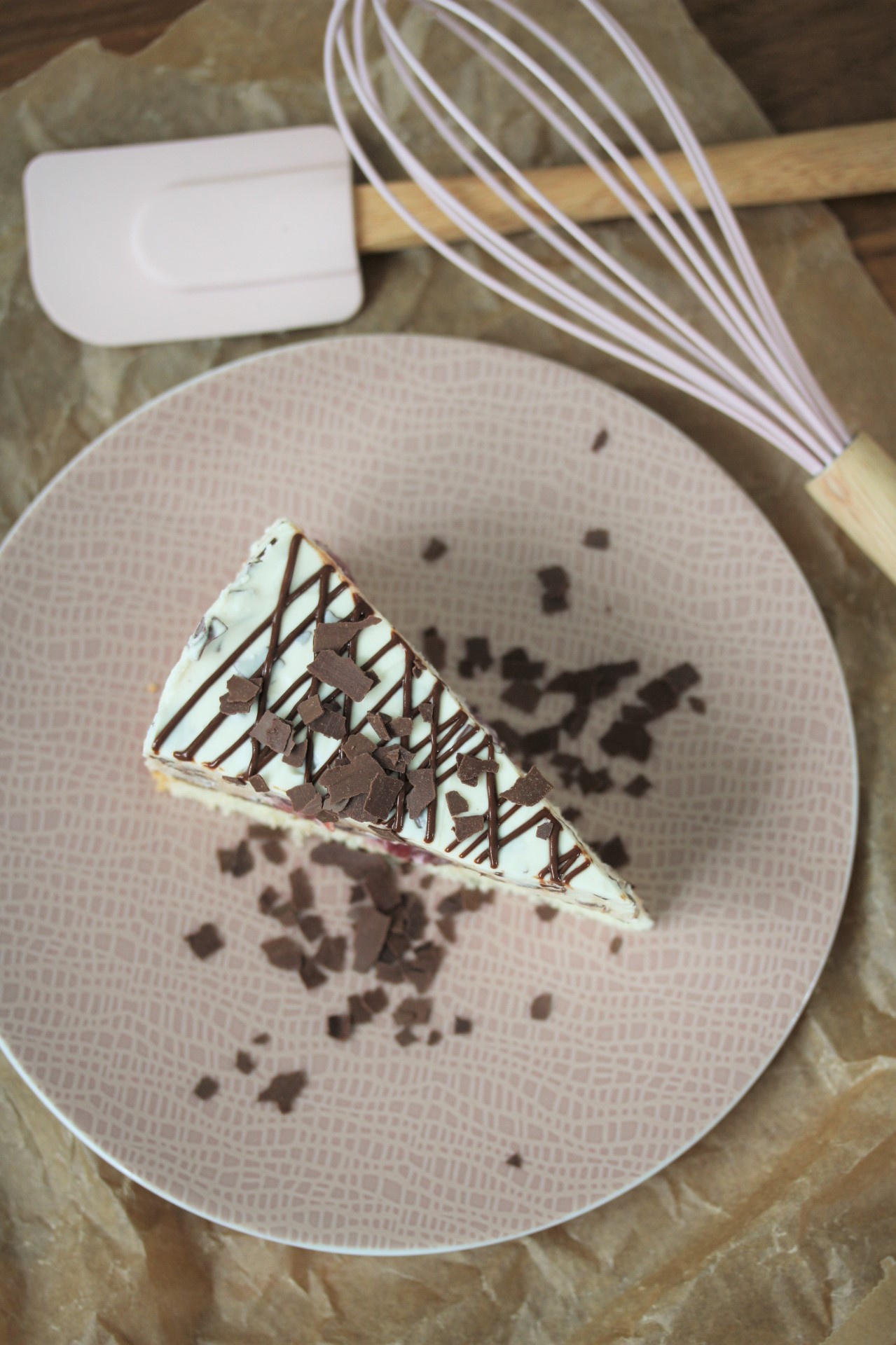 Die Masse auf den Tortenboden geben und glattstreichen. Die Torte nun am besten über Nacht oder mind. 4 Stunden kaltstellen.