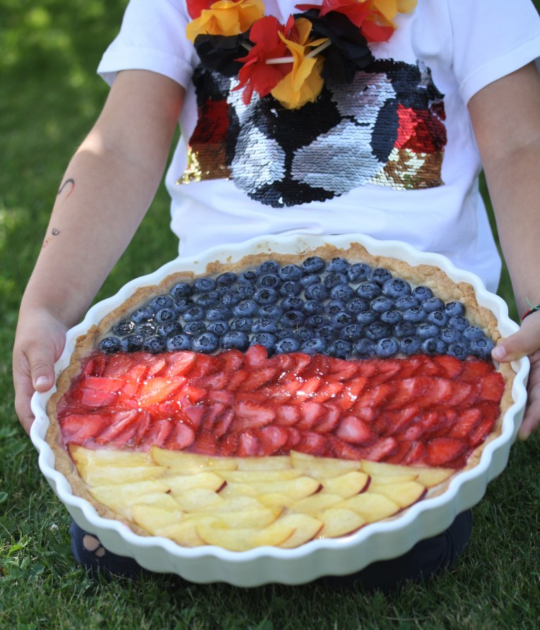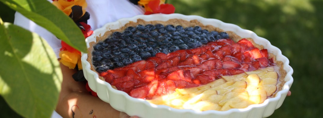 Valentina hat sich für heute neue Tatoos zugelegt und wir hoffen natürlich auf den Einzug ins Achtelfinale! Für unsere Grillparty hab ich noch die Tarte mit Jogurtceme bissle auf „Deutschland“ gepimpt! Das Rezept ist ja online und hier findet ihr die pdf-Datei noch einmal: Tarte mit Jogurtcreme und Möchtegernkirschen