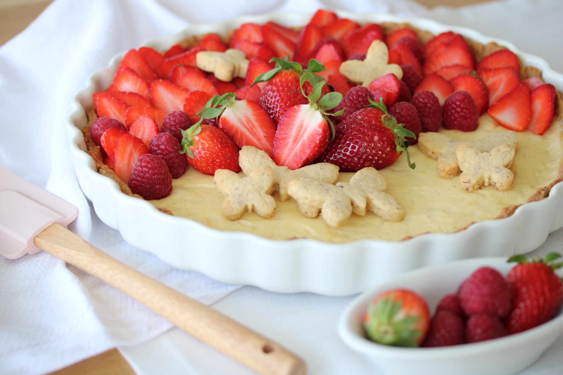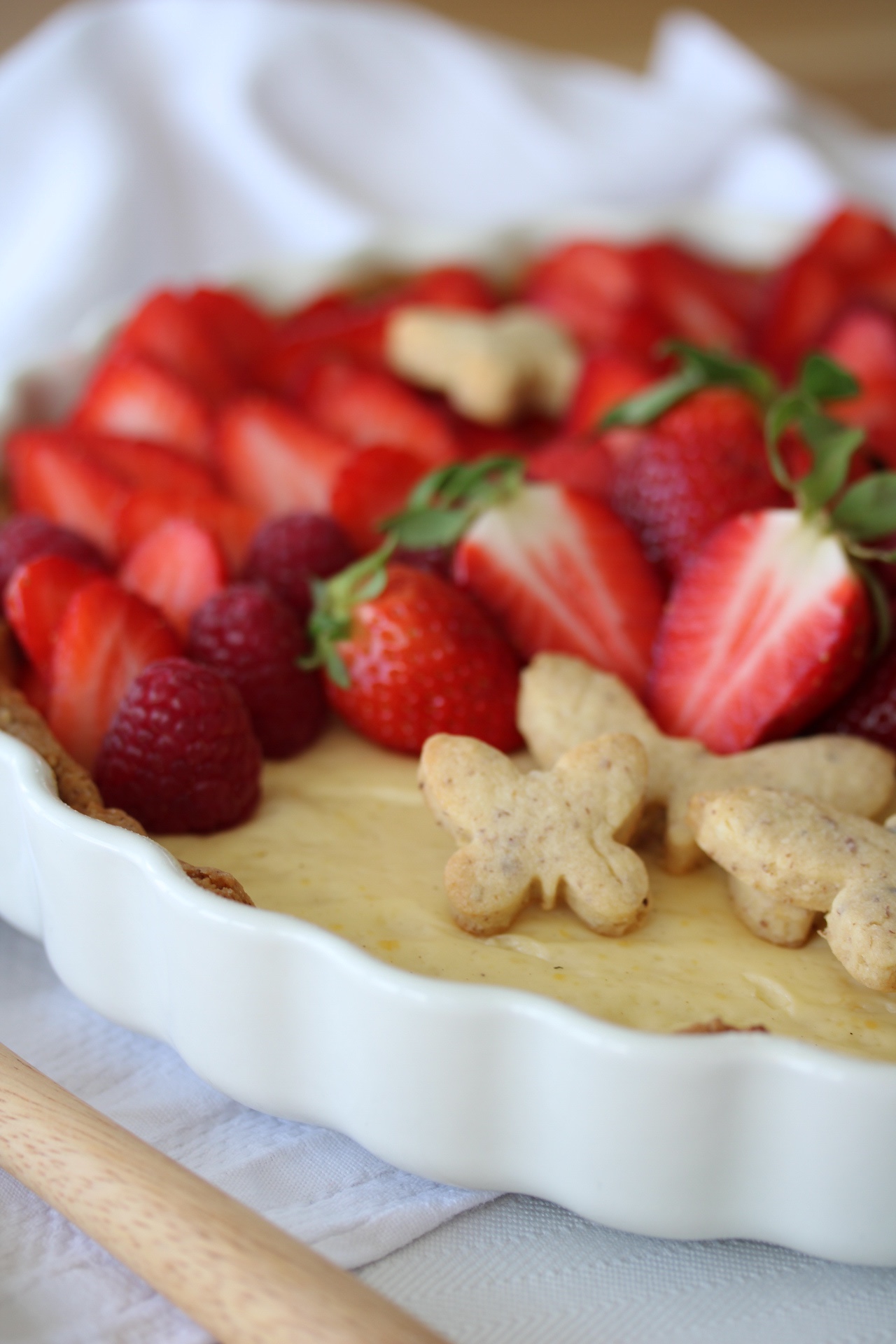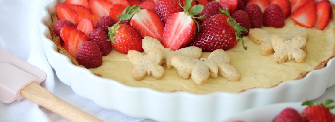 Hier kommt das Rezept für die leckere Tarte mit Jogurtcreme und Erdbeeren (eigentlich Kirschen…aber es gab noch keine).